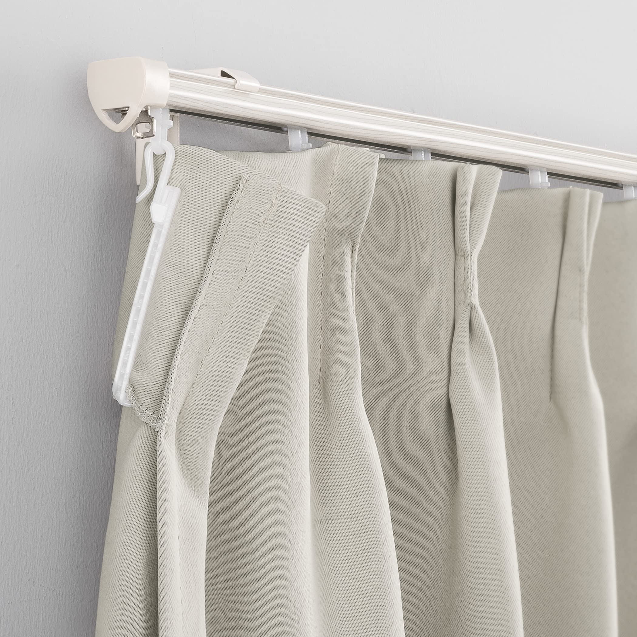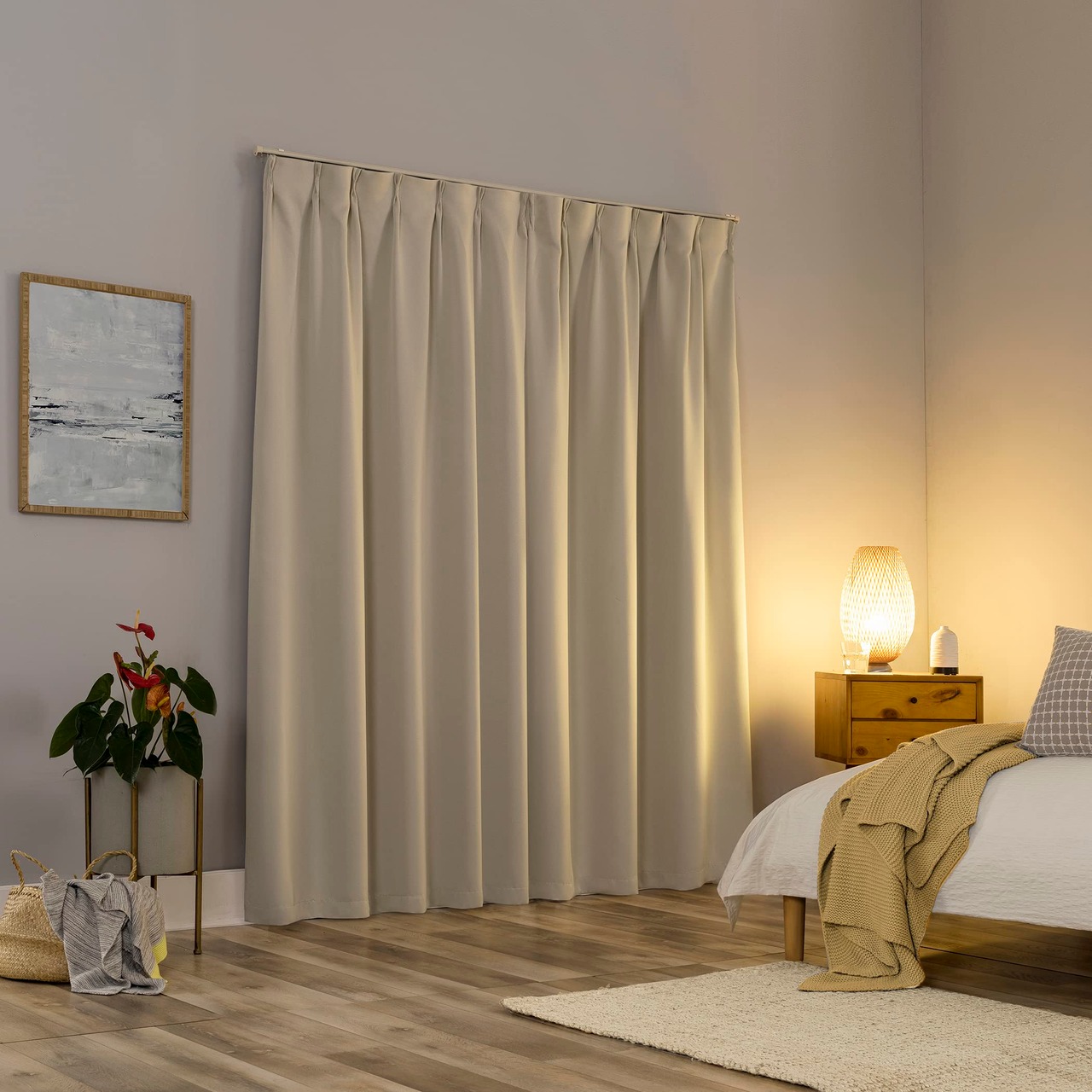 【生地について】このカーテンは 100% ポリエステル製の厚みのある生地です。肌触りが柔らかく滑らかでマットな質感です。生地の表裏で色が違うので、間仕切りとしても使いやすいです。