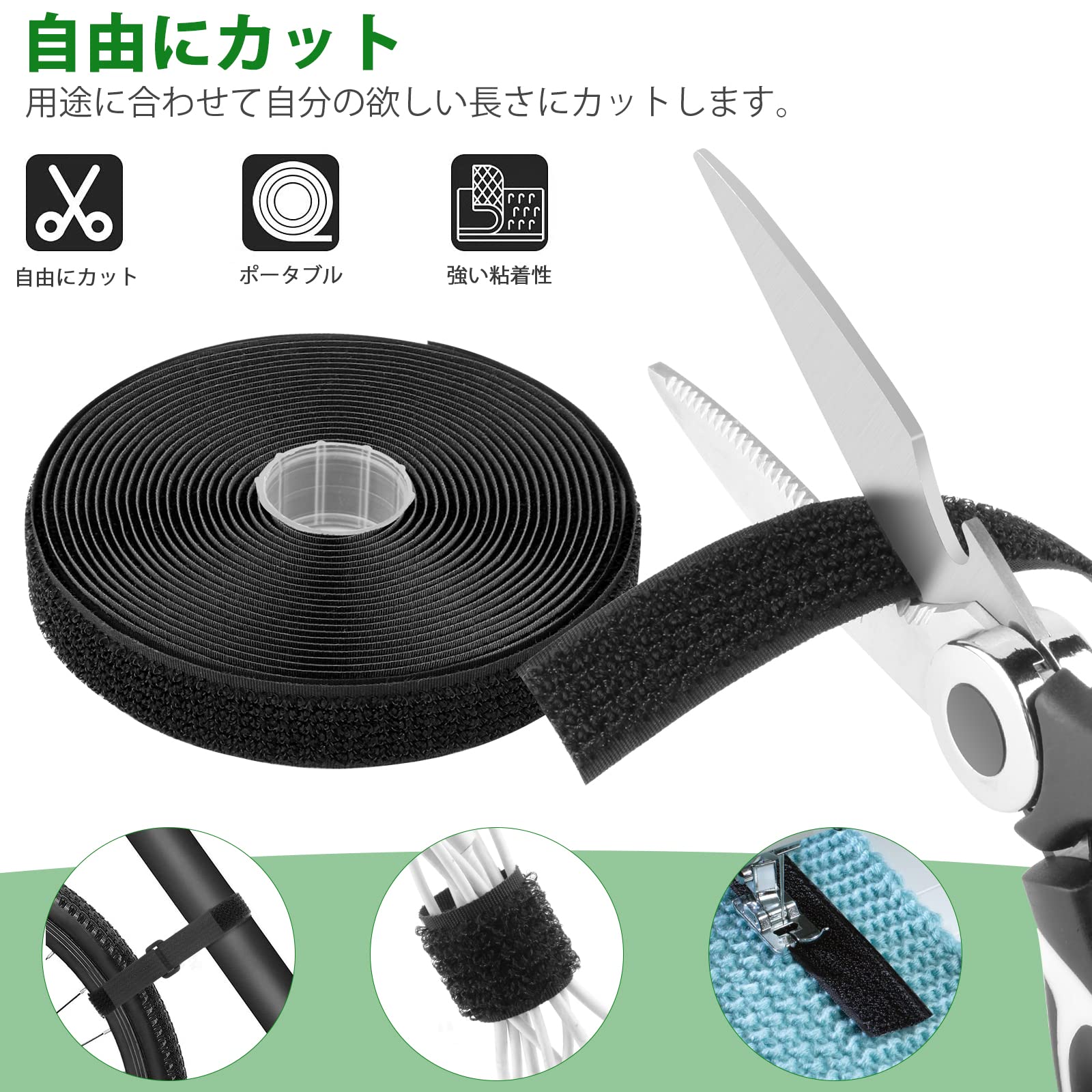 【幅広い用途】長さ6Mの粘着面ファスナーは、スキー、バックパック、ケーブル、傘、ヨガマット、自転車、ベビーカーオーガナイザーなど、さまざまなサイズのアイテムにフィットするように設計されており、DIYソーイングにも使えます。