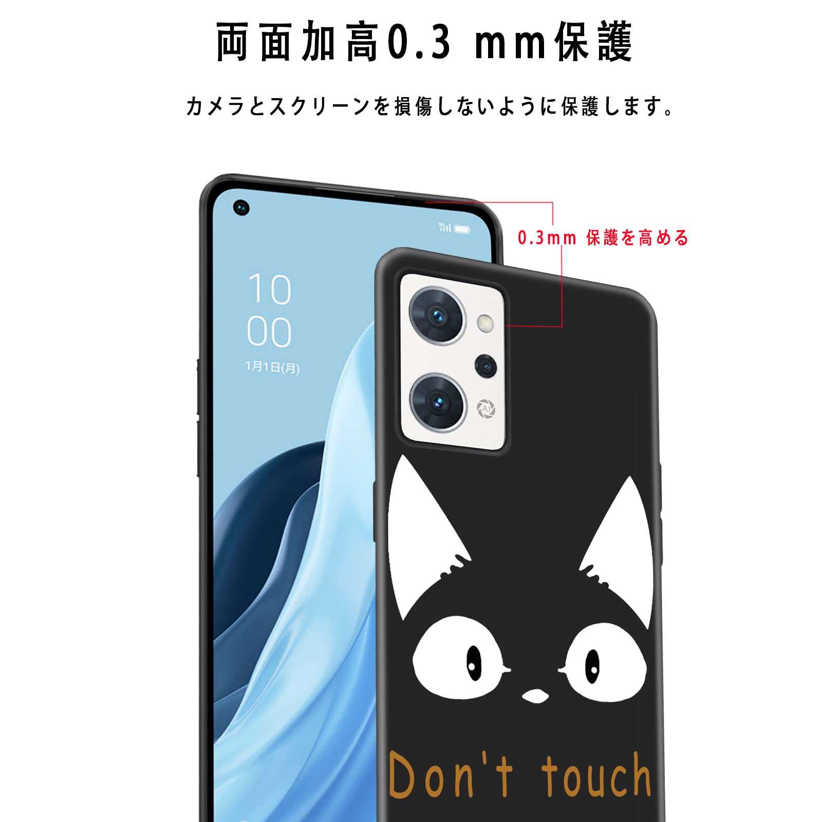 FOR OPPO Reno7 A (CPH2353) 用のケース FOR OPPO Reno7 A 用のケース 薄型 軽量 衝撃吸収 TPU ストラップ付き 背面 創意 ブラック かわいい パターン 携帯 ケース (CPH2353) 用の全面保護 ケース 落下防止 PCduoduo (Don't touch)