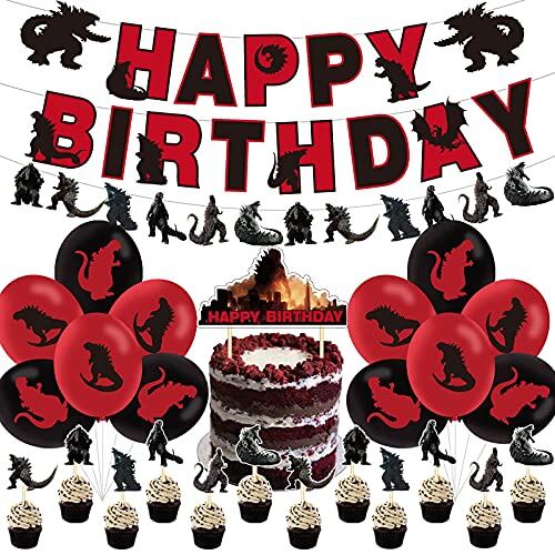 BerYaoYao バースデーパーティー用品デコレーション、ゴジラバースデーパーティーデコレーション、ゴジラ対。 コングデコレーション、バースデーセットのバルーンデコレーションバナーケーキトッパー