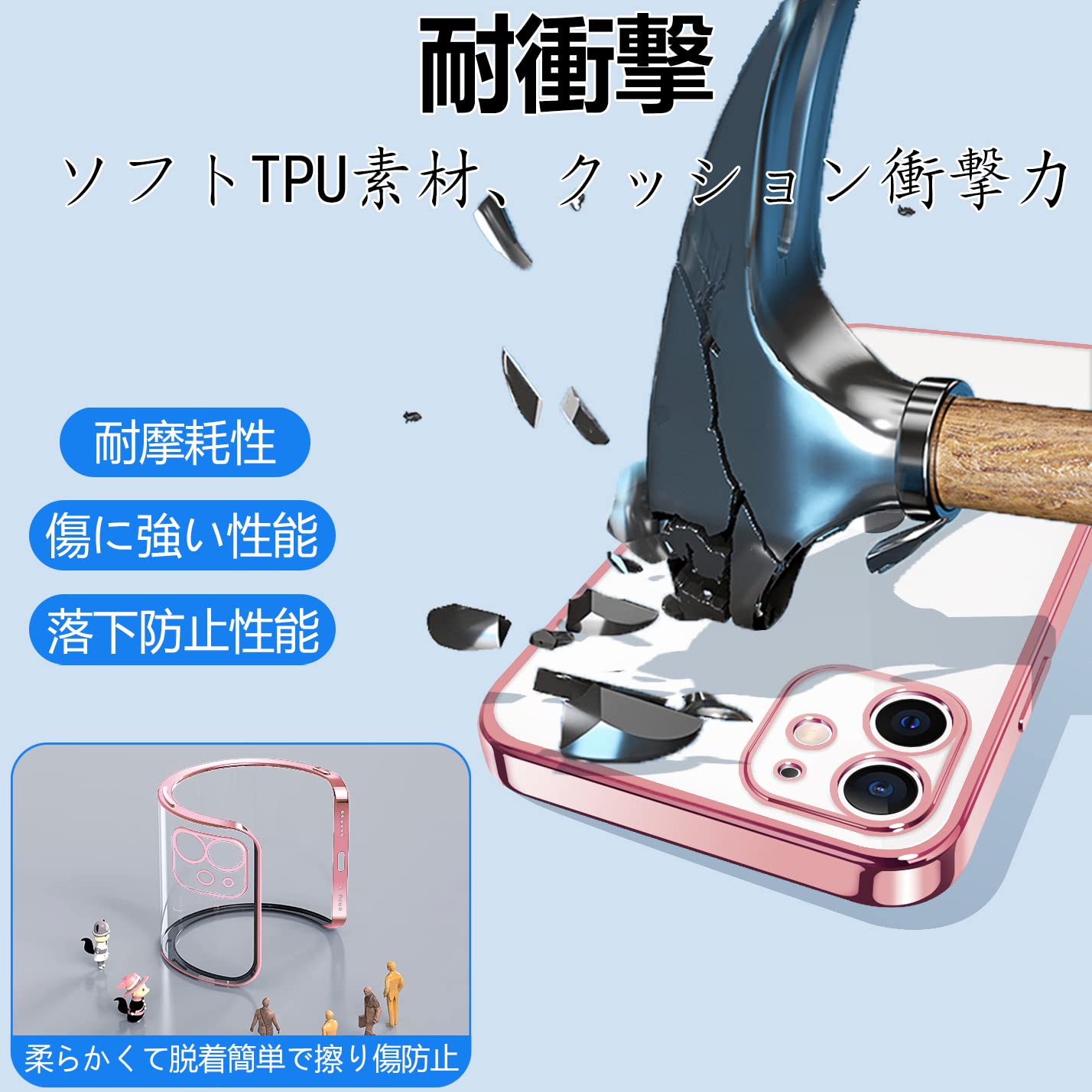 【TPU素材】に適合するiPhone12(6.1インチ)スマートフォン専用保護カバー 。TPU素材を採用。柔軟性が高く着脱が簡単で変形しにくく、ベタつかず適度な柔らかさで触り心地が良い。を傷から守れつつも、人や環境に優しいです。