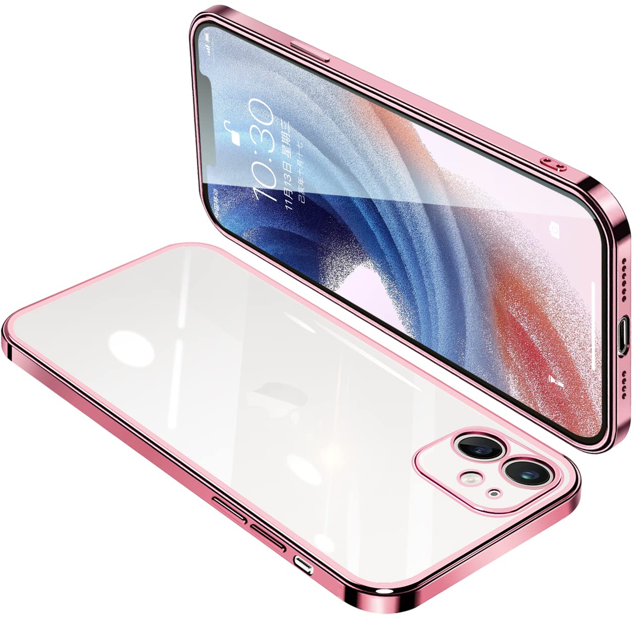 ONETIAOLONG に適合するiPhone12 用のケース クリア アイフォン12 用のカバー 透明 スマホケース 全面保護 耐衝撃 軽量 メッキ加工 TPU 薄型 ストラップホール付き 滑り止め 落下防止(ローズゴールド)