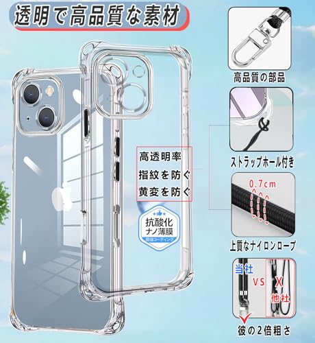 OJBSEN iPhone 15 Plus 用 ケース アイフォン15Plus ケース【ストラップ2枚付き】調節可能な ショルダー 肩がけ 首掛け 紐付き 斜めがけ スマホケース いphone15Plus 薄型 透明 軽量 シリコン TPU バンパー ストラップホール付き [耐衝撃 傷防止 全面保護 米軍MIL規格]ワイヤレス充電対応 アイフォン15プラス カバー (クリア)