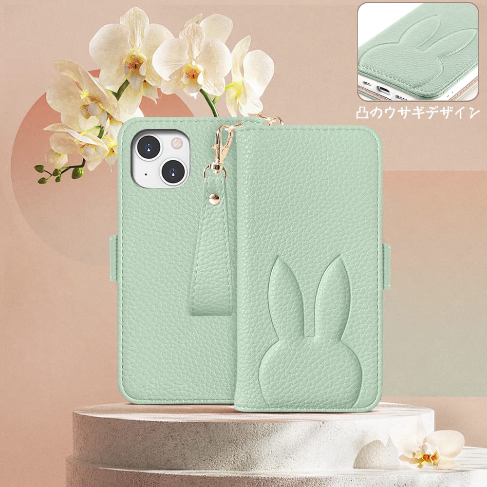 iPhone 14 ケース 手帳型人気 iPhone 14 手帳型ケース かわいい兎 アイフォン 14 ケース 手帳型 女性 耐汚れ 耐衝撃 マグネット式 iphone14 ケース 手帳型 可愛い カード収納 便利 上品な アイフォン 14 手帳型 携帯ケース スタンド機能 iPhone 14 手帳ケース 携帯カバー 手作 財布型 防水落下防止 横置き機能 男女兼用 贈り物 兎柄 動物グリーン
