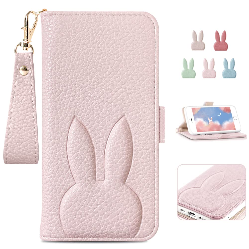 ❀【高級素材、柔らかいTPU ケース手帳型】①肌感PUレザー +柔軟なTPUカバーと組み合わせ、厳選された革を採用しており、目に見える高級感と抜群な、肌のような手触り感、長時間持っても汗をかきません、夏に最適!②スマホ本体はめ込み部分はな柔らかいTPU(シリコン)ケースです、TPU素材を使用したソフトカバーにより、軽量と耐衝撃を兼ね備えました、は取り付け・取り外しが簡単で、スマホ本体への損傷の心配ありません③男の子にも女の子にも適した、カップルの携帯電話ケースとして使用できる色がたくさんあります,うさぎが印象的でかわいい