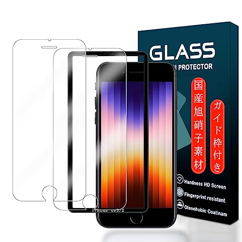対応 iphone se3 / se2 用 ガラスフィルム ガイド枠付き 【2枚セット-国産AGC旭硝子素材】 iPhone se3 2022 / iPhone se2 2020 / iPhone 8 / iPhone 7 薄型 強化ガラス ガイド枠 アイフォンSE 第3世代 2022 保護フィルム アイフォンSE 第2世代 2020 液晶保護フィルム アイフォン7 アイフォン8 ガラス【高感度 高透過率 厚さ0.26mm ウンドエッジ加工 硬度9H 旭硝子素材 衝撃吸収 飛散防止 指紋防止 撥水撥油 自