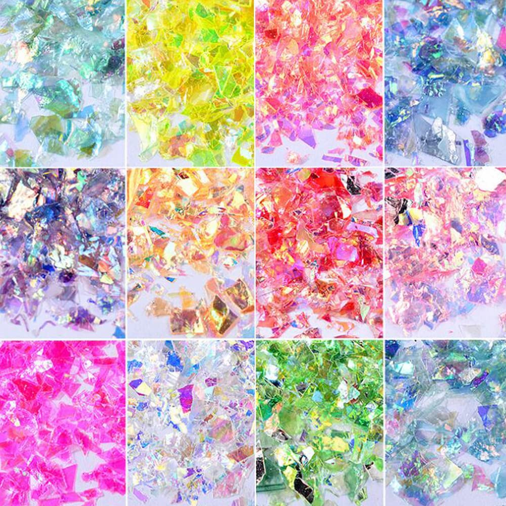 YFFSFDC クラッシュ ホログラム 12色セット ネオンフレーク 素材 手芸 レジン 封入 パーツ ネイルアート ラメフィルム