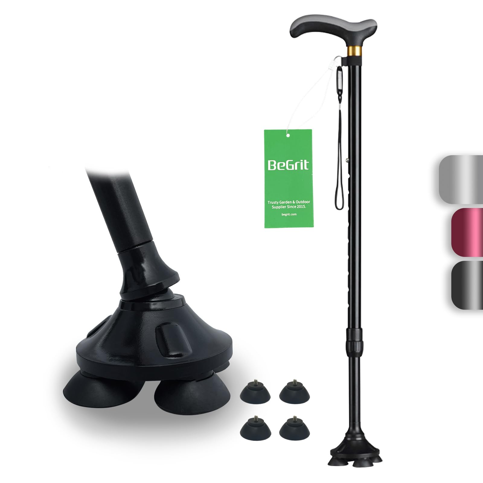 BeGrit グレー 伸縮ステッキ 杖 4本足 自立式 4点杖 軽量 多機能ステッキつえ 杖 男性用と女性用 アルミ 歩行補助杖 ステッキ 杖 10段階調節 身長142~188cmが似合います 敬老の日プレゼント
