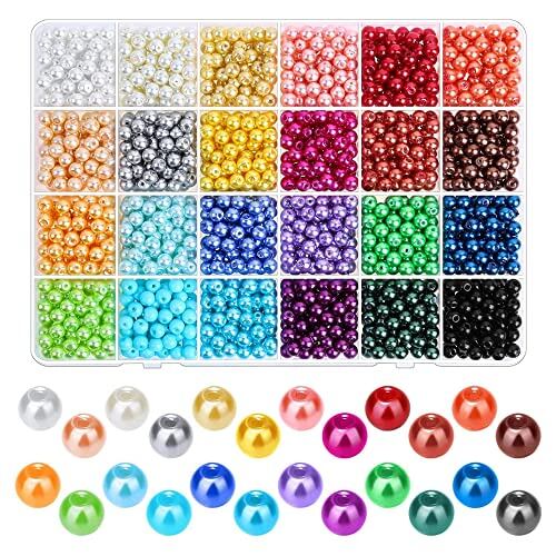 YFFSFDC ガラスビーズ 24色パールビーズ 両穴しカラーパール 糸通しビーズ アクセサリー 手作りアクササリー DIY DIY用 手芸 手芸材料 手作り ミックス 混合色 24色 6mm 約1680個