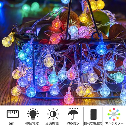 Topamz LEDイルミネーションライト 6m 40灯 電池式 マルチカラー固定 点滅/点灯切替 コードレス 防滴防塵 屋内屋外両用 ガーランドライト クリスマス 誕生日・結婚式 パーティー装饰(多色・電池給電)