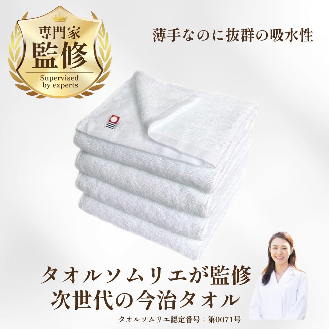【カラー】No.04 ホワイト[蛍光増白剤使用] 4枚セット【フェイスタオルサイズ】約34x86cm、最高級綿100%【重さ】240匁(約75g)