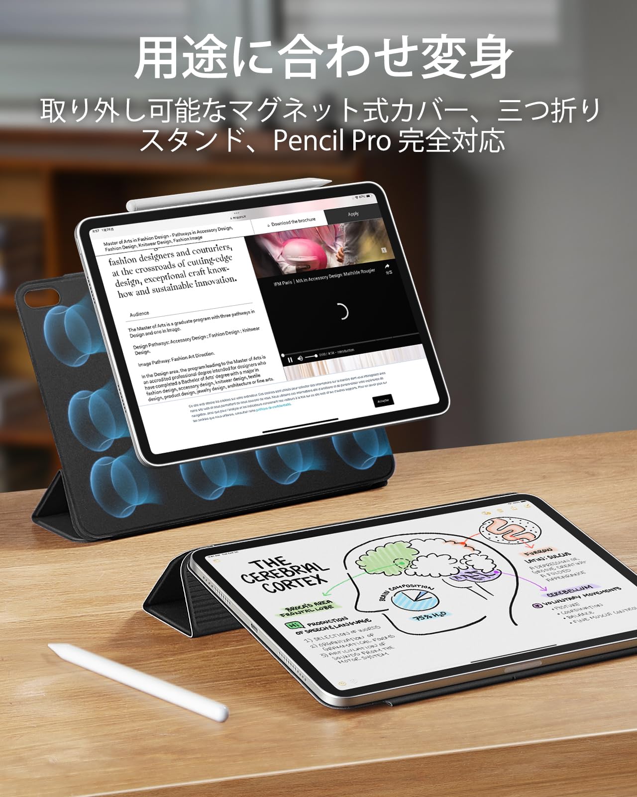【Pencil Pro&Pencil (USB-C)対応】:Pencil Proへ完全対応かつ、磁気充電用の側面の溝と、Pencilをしっかりと固定するマグネットクラスプを備えています