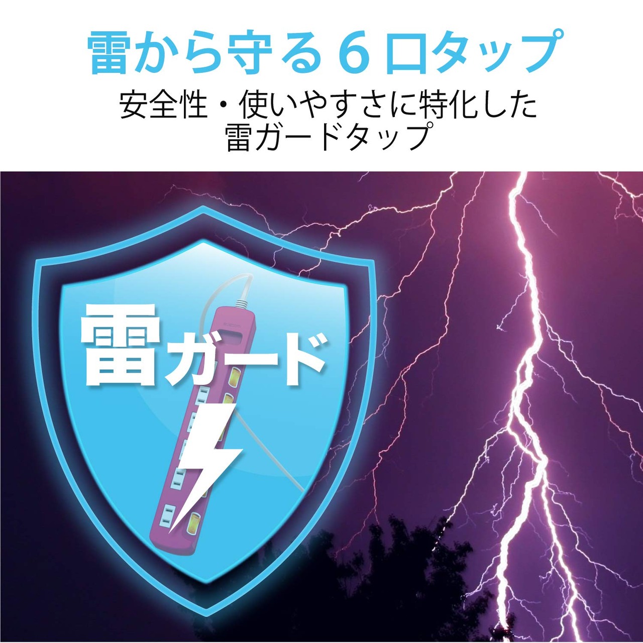 誘導雷による最大12500Vまで(JEC210/212規格に基づく数値)の雷サージを吸収する素子(バリスタ)を搭載し、接続機器を保護します。※受けた電圧や回数により性能は劣化します。