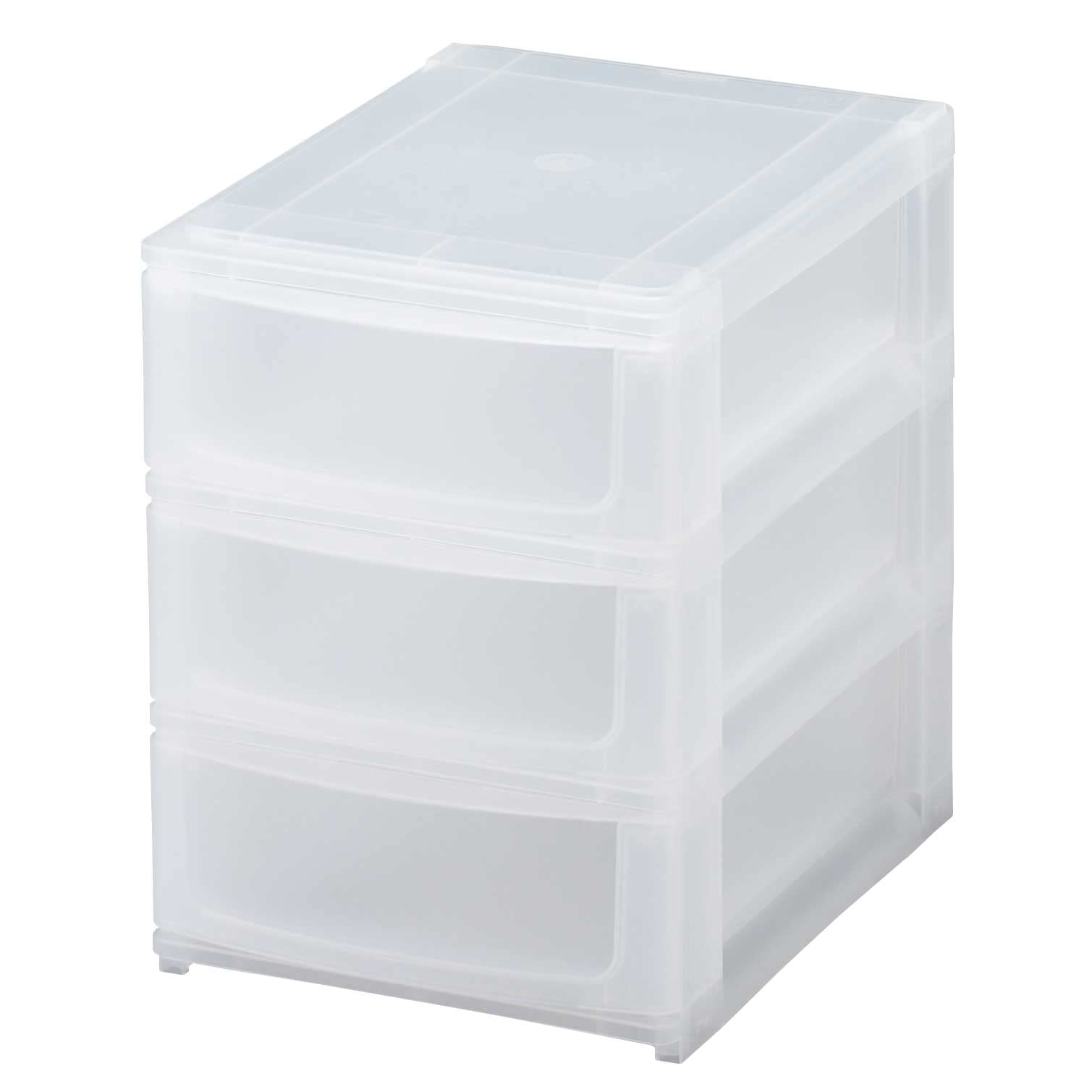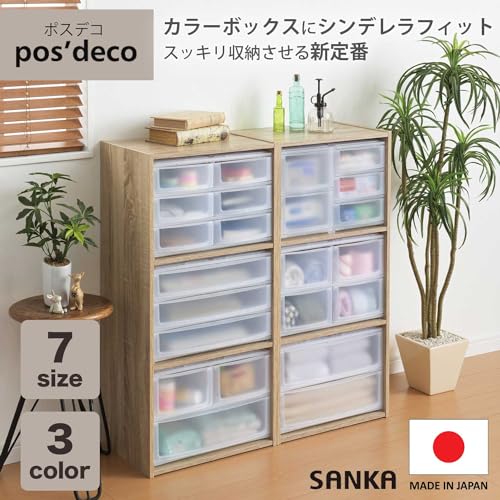 サンカ ポスデコ カラーボックスにピッタリフィット 引き出し収納ボックス ハーフ 浅3段 クリア ずれを防ぐラバーストッパー 重ねて使える スタッキングチェスト ロック機構 日本製 カラーボックス 収納ケース 小物 衣装 ボックス (幅19.5x奥行26.5x高さ26.5cm) NpdA5-a3CL