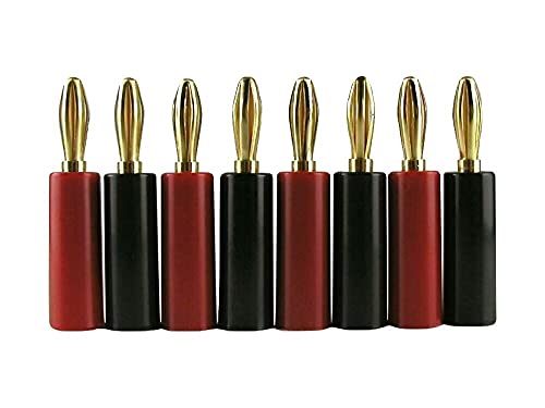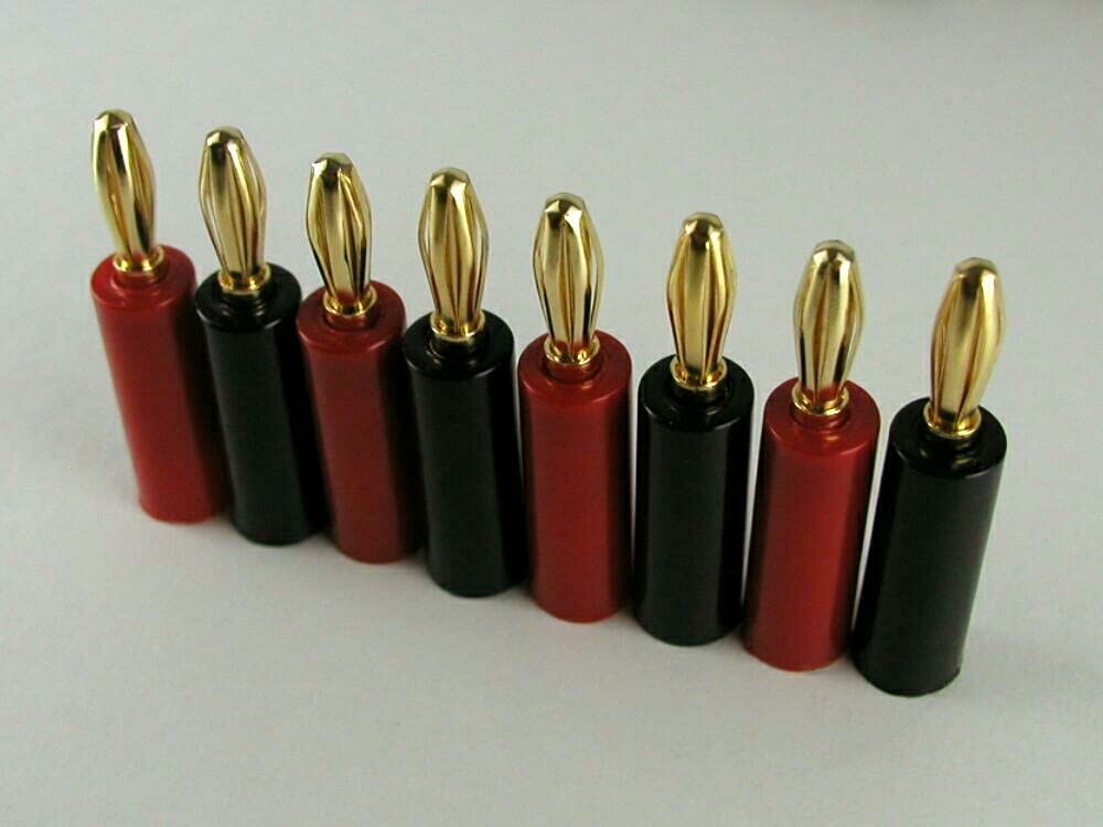 バナナプラグ 24K 金メッキ ゴールド ソルダーレス レッド&ブラック 8本セット