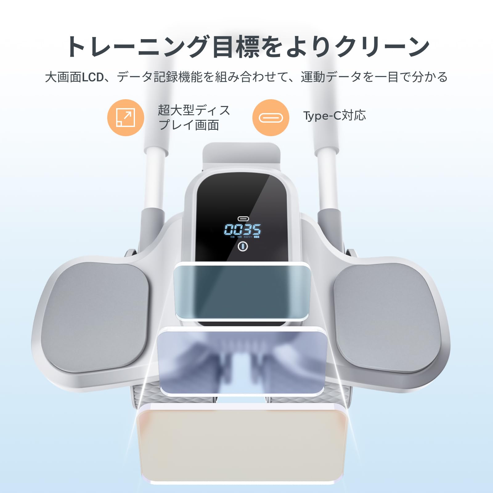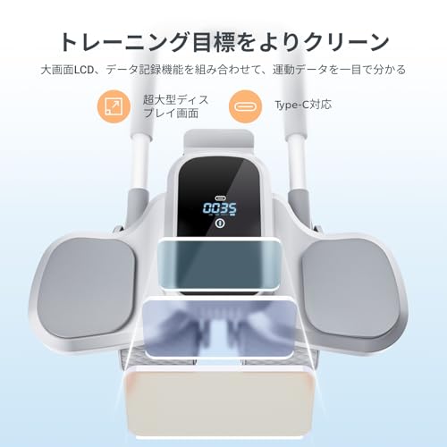 【回数・時間・消費カロリーが一目瞭然&Type-C対応】この腹筋ローラーには液晶ディスプレイが搭載されており、リアルタイムで回数、時間、消費カロリーを正確に表示することができます。これにより、いつでも自分の運動データを把握し、運動データに基づいてトレーニングの回数や強度を調整し、運動効率を高めることができます。また、Type-C充電にも対応しています。