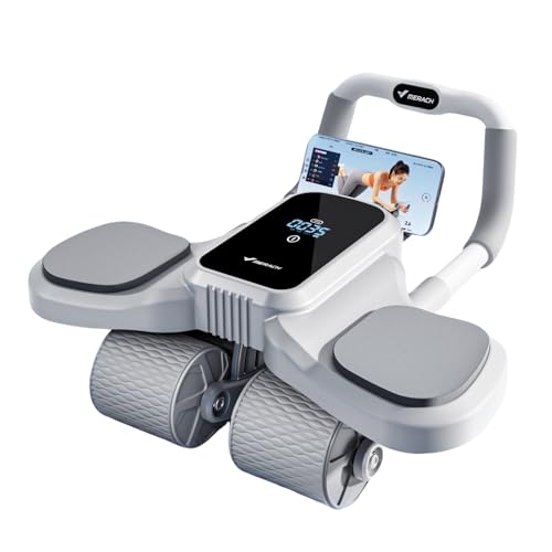 MERACH (メリック) 腹筋ローラー 4輪 LCDディスプレイ 自動スプリングバック スマートブレーキ type-c充電 スマホスタンド付き 膝マット付き 荷重200kg 組立簡単 静音 プロ 腹筋 ローラー 腹筋マシーン 腹筋マット アブローラー トレーニング エクササイズ ストレッチ ダイエット 筋トレ 器具 男性/女性 初心者/上級者 自宅 床傷つけない グレー