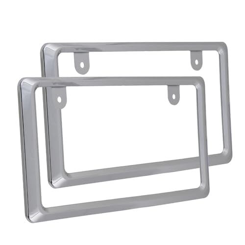 【新法規対応品】NanoSight ナンバーフレーム クローム 軽自動車 普通車 小さく見える 黄色の縁隠 (クローム 2枚)