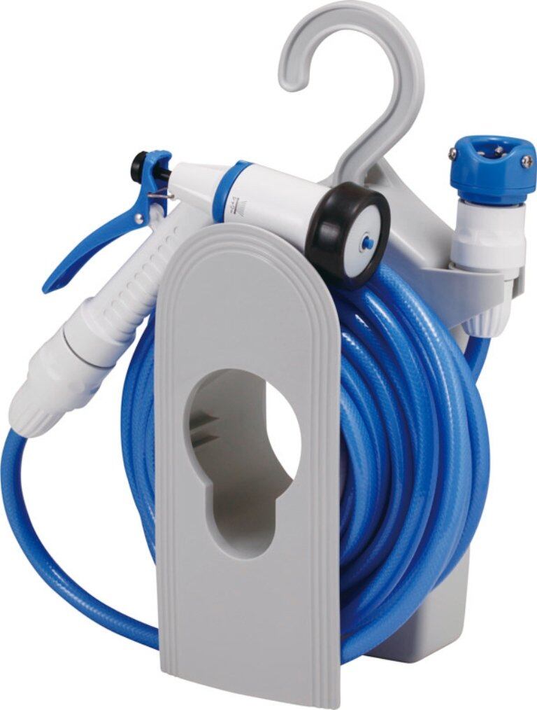 狭い場所での散水や、ベランダでの水やりに便利なハンガータイプのコンパクトリール。