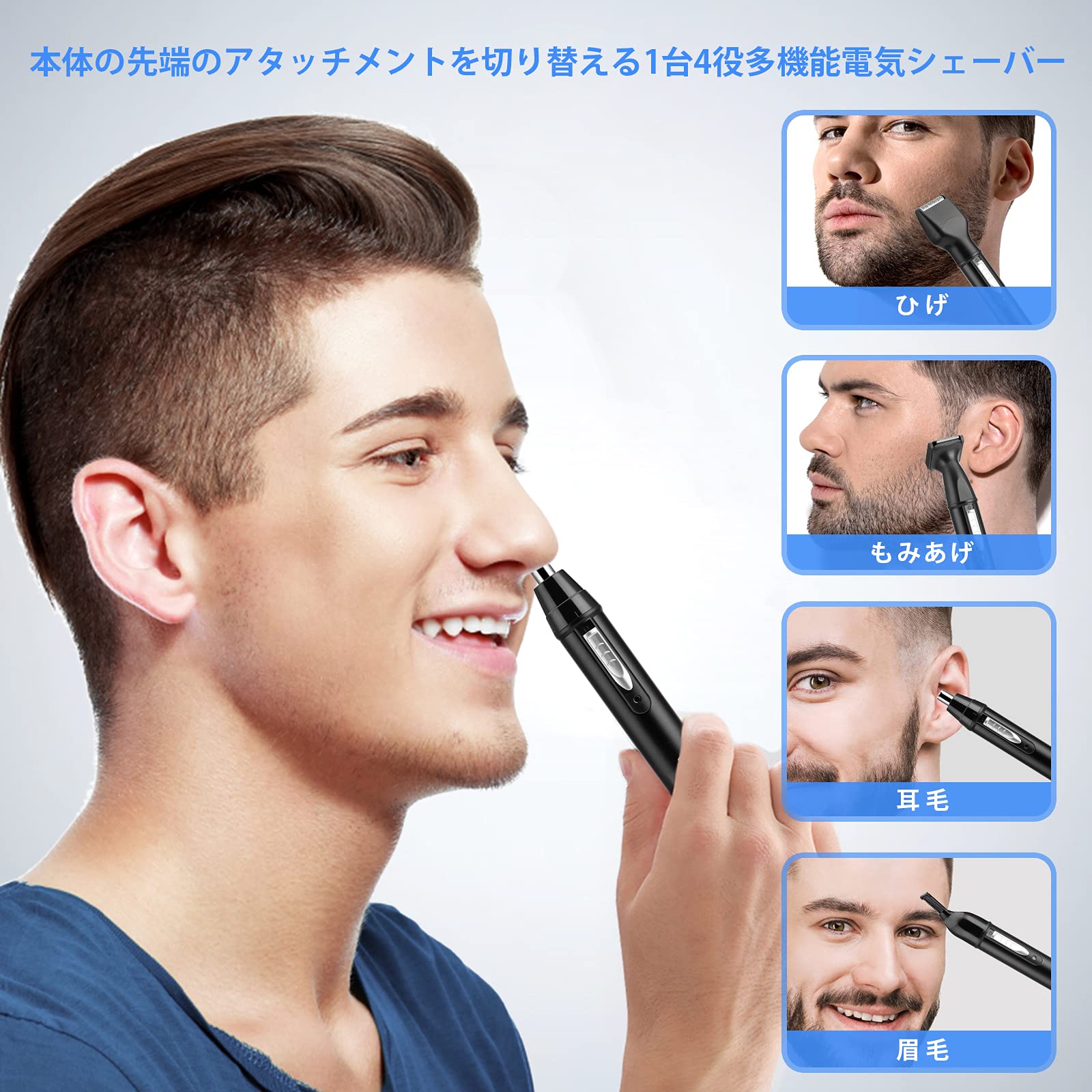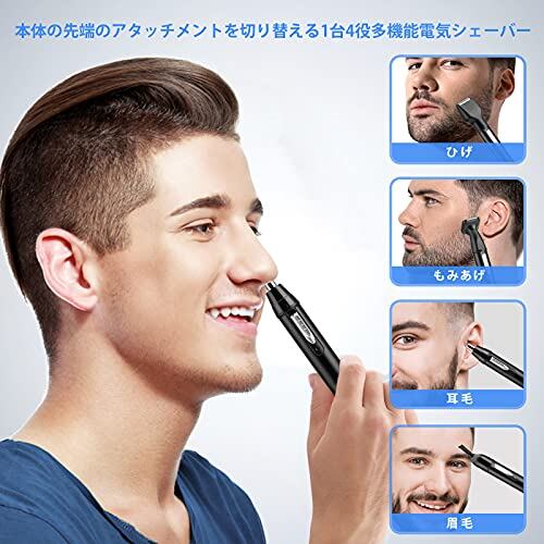 Sugarman 鼻毛カッター メンズ USB充電式 エチケットカッター 1台4役 電動シェーバー 女性 男性 鼻毛切り はなげ 耳毛カッター 眉毛シェーバー 顔そり 髭剃り うぶげそり 脇そり 産毛 ムダ毛処理 全身用 電動カミソリ 水洗い可 低騒音 日本語説明書