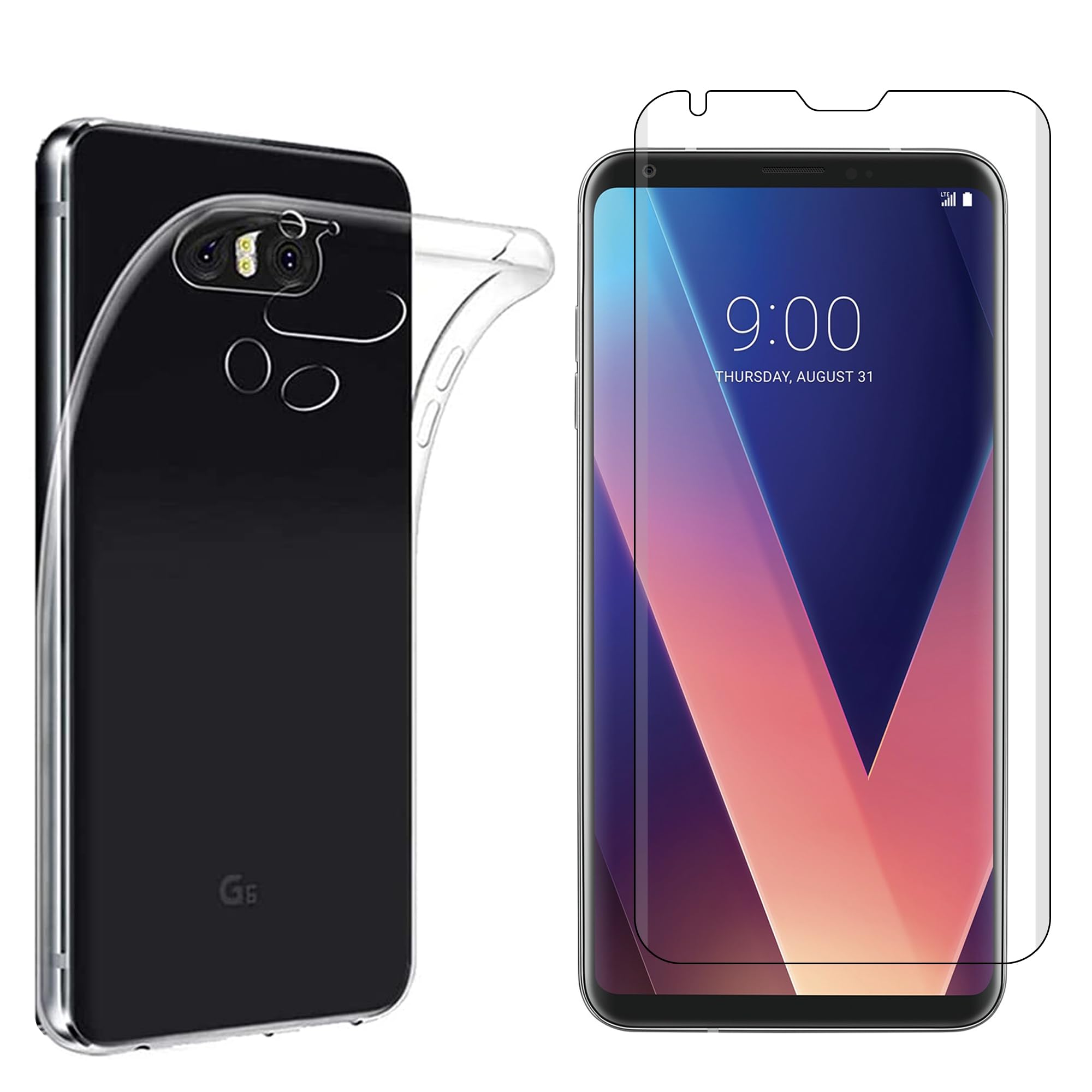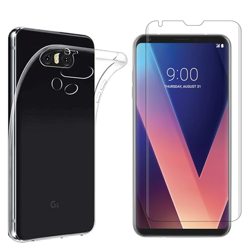 【1枚フィルム+ケース TPU】For LG V30+ au isai V30+ LGV35 / docomo V30+ L-01K/JOJO L-02K/LG V30 Plus 用の ガラスフィルム 3D曲面+For LG V30+ au isai V30+ LGV35 / docomo V30+ L-01K/JOJO L-02K/LG V30 Plus 用の ケース TPU 対応 透明 薄型 耐衝撃 黄変防止 防指紋