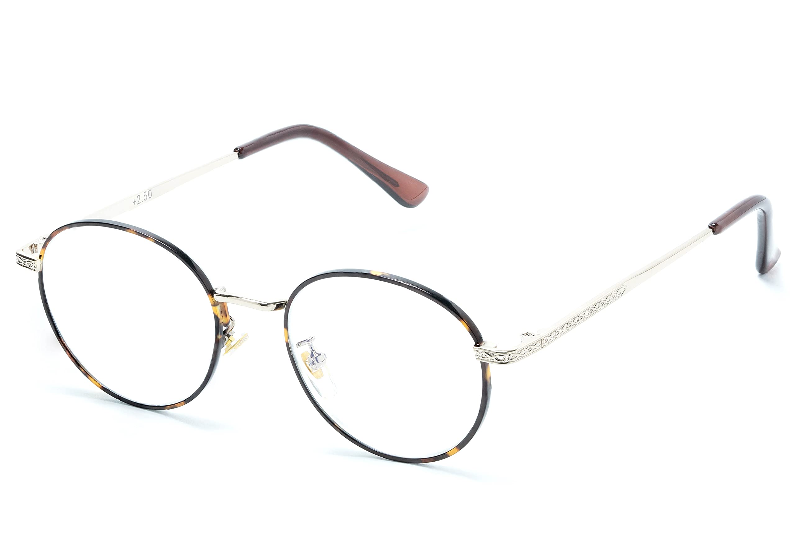 老眼鏡 レディース おしゃれ フレーム ライブラリースタイル 非球面レンズ ブルーライトカット 軽量 丸メガネ ラウンド メタル 度数 +1.50 497115