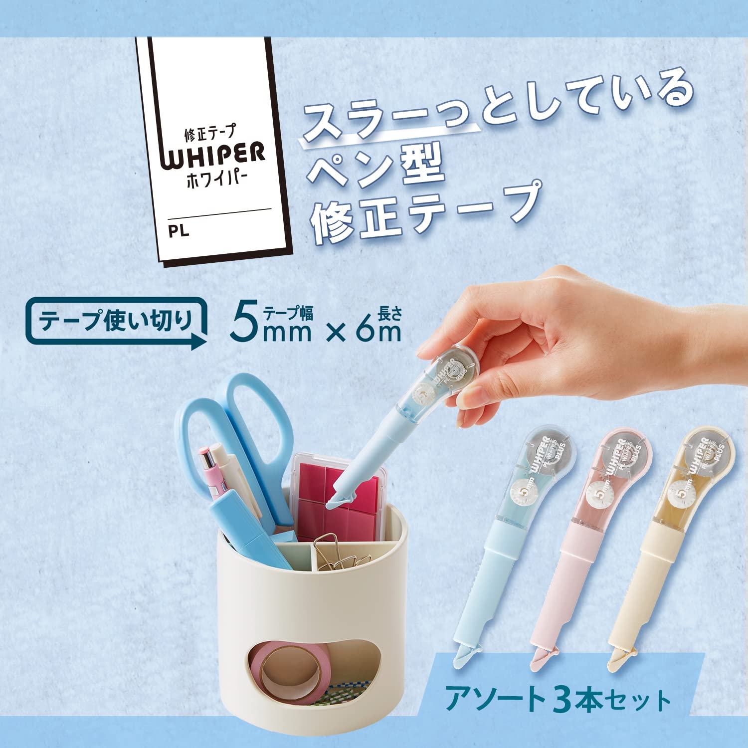 プラス 修正テープ ホワイパー PL 5mm 3色 各1個セット ブルー ピンク アイボリー WH-1905 52-133 + 134 + 135