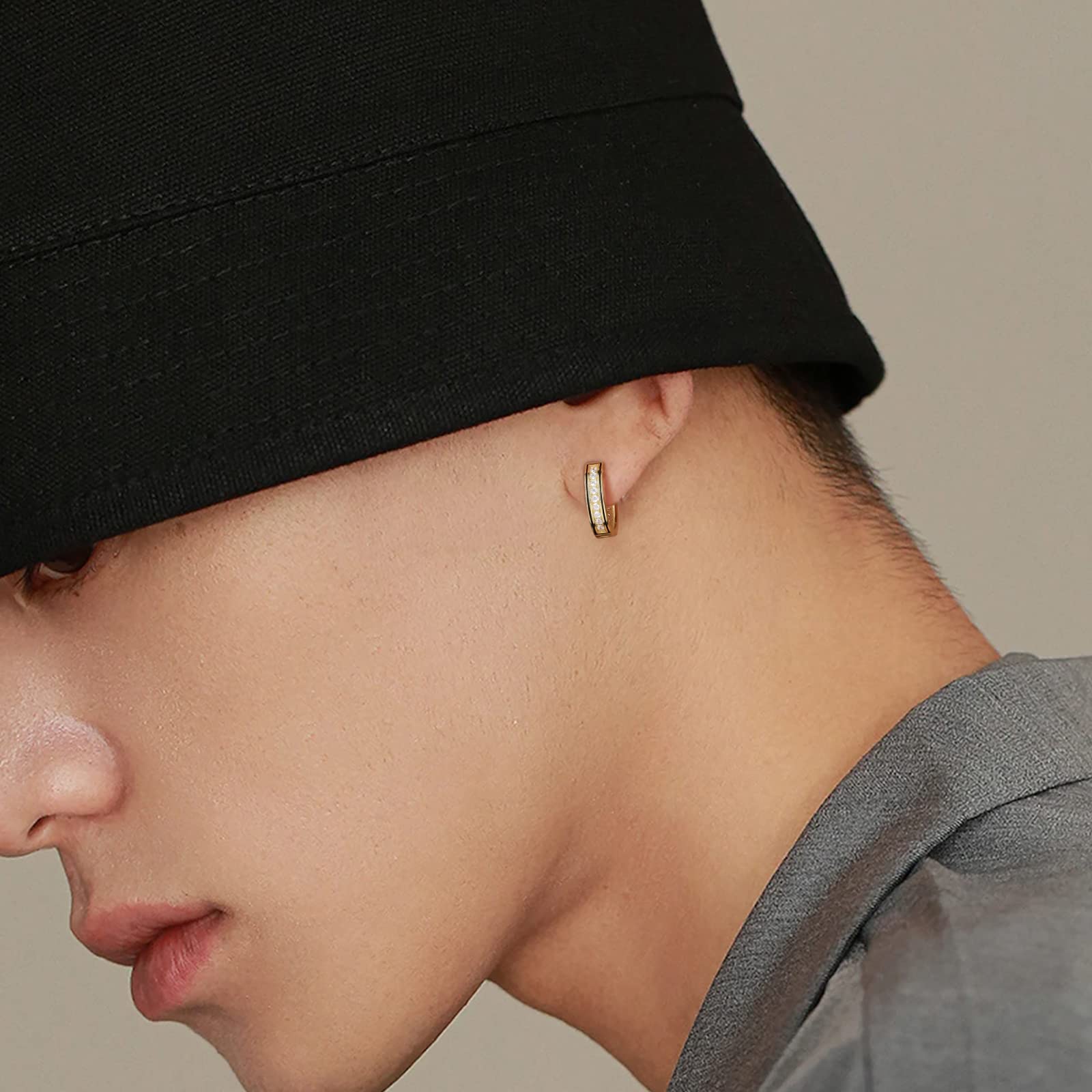 KRKC&CO フープピアス メンズ シルバー925 両耳15mm 18G ジルコニア イヤリング CZダイヤ 14Kメッキ つけっぱなし 金属アレルギー対応 アクセサリー 誕生日プレゼント