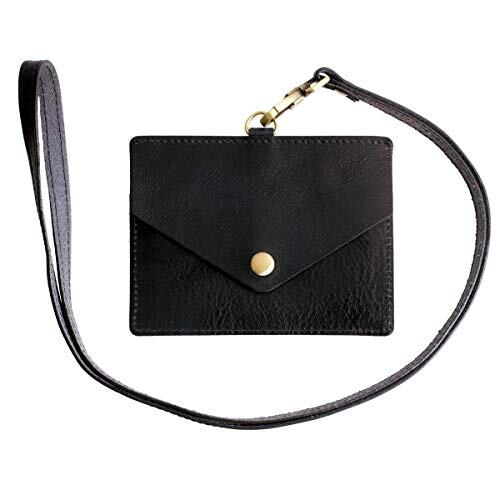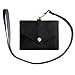 [RafiCaro] パスケース IDカードホルダー Wポケット 定期入れ本革 イタリアンレザー 首掛け ネックストラップ付 idケース 社員証 カードケース メンズ レディース ブラック