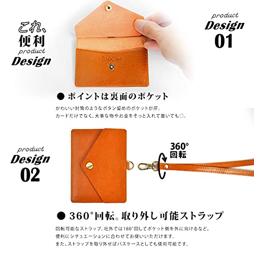 [ブランド] RafiCaro - ラフィカロ 【身につけるこだわり】毎日がもっとハッピーになる。 ポイントは裏面のポケット 可愛い封筒のようなボタン留めのポケットになっています。 カードだけでなく、大事なメモやお金をそっと入れておいてもOK 素材も使用するにつれてエイジングがかかり味わいが深くなるイタリアンレザーを使用。 末永く使えるパートナーとして最良の素材です。