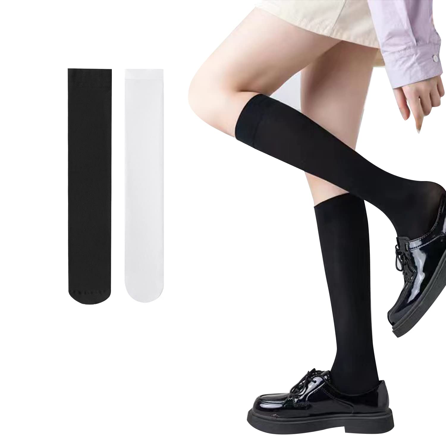 [WindTour] ハイソックス レディース 靴下 ストッキング 着圧ソックス ニーソックス ひざ下 ロングソックス 無地 加圧ソックス 着圧 ソックス 黒 白 スクールソックス 100デニール ショートストッキング 膝下 ストッキングソックス ニーソ (2足組(黒*1足+白*1足))