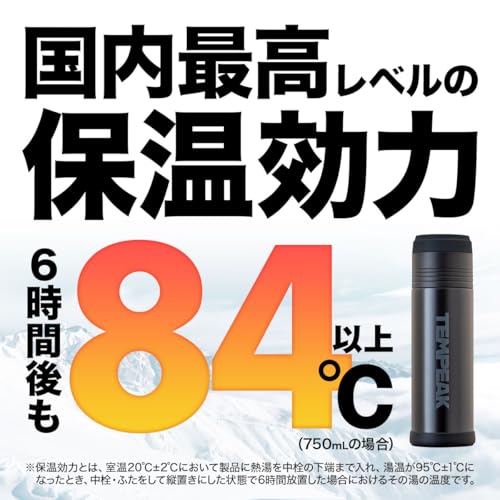 アトラス 水筒 750ml 超保温ボトル 真空断熱 ステンレス ボトル 保温保冷 キャンプ アウトドア 登山 スポーツドリンク対応 白湯 テンピーク ブラック ATPB-750BK