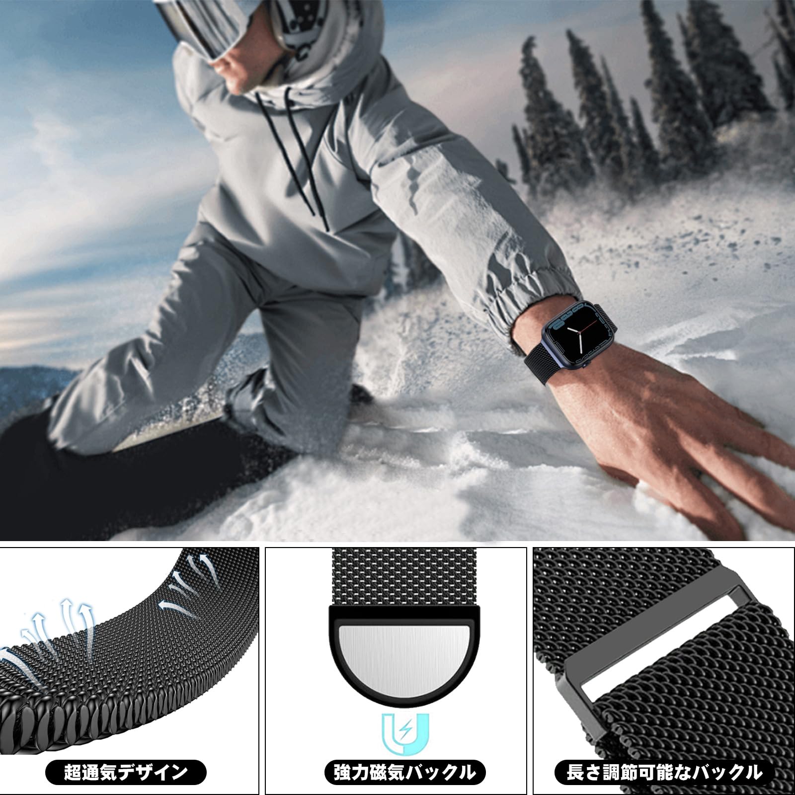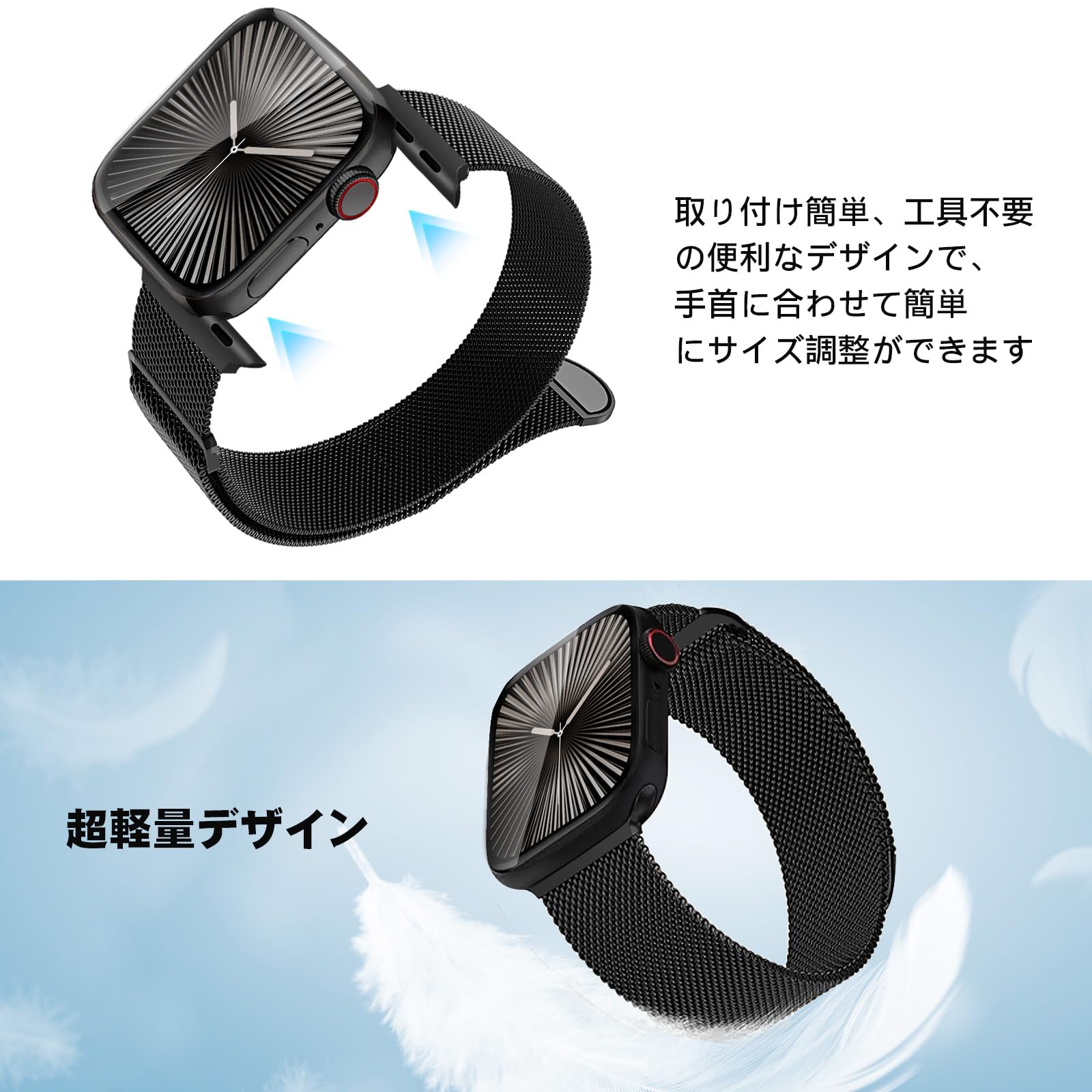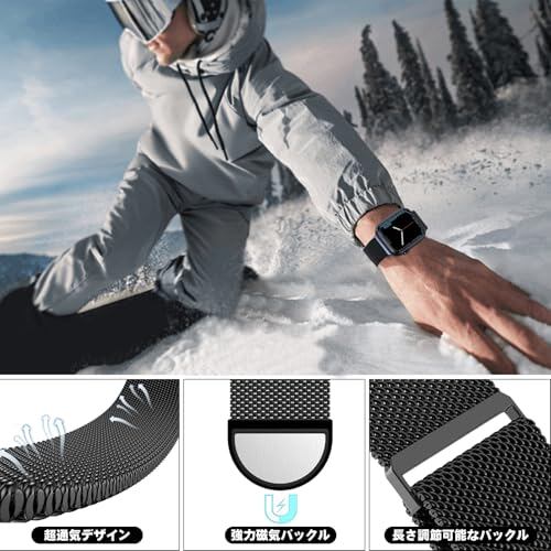 CAERMA コンパチブル アップルウォッチ バンド 38mm 40mm 41mm 42mm 44mm 45mm 46mm 49mm コンパチブル Apple Watch バンド ステンレス留め金製 男女兼用 長さ調節 強力な磁 通気 メッシュ ベルト コンパチブル Apple Watch Series 11/10/9/8/7/6/5/4/3/2/1/SE/Ultra 対応(49/46/45/44/42mm(Series 3) ブラック)