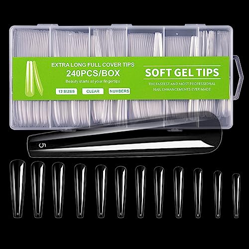 COLORBIRD ネイルチップ ロング スーパーロング 240枚 超鬼ロング クリア ギャルネイル 付け爪 (バレリーナSL)