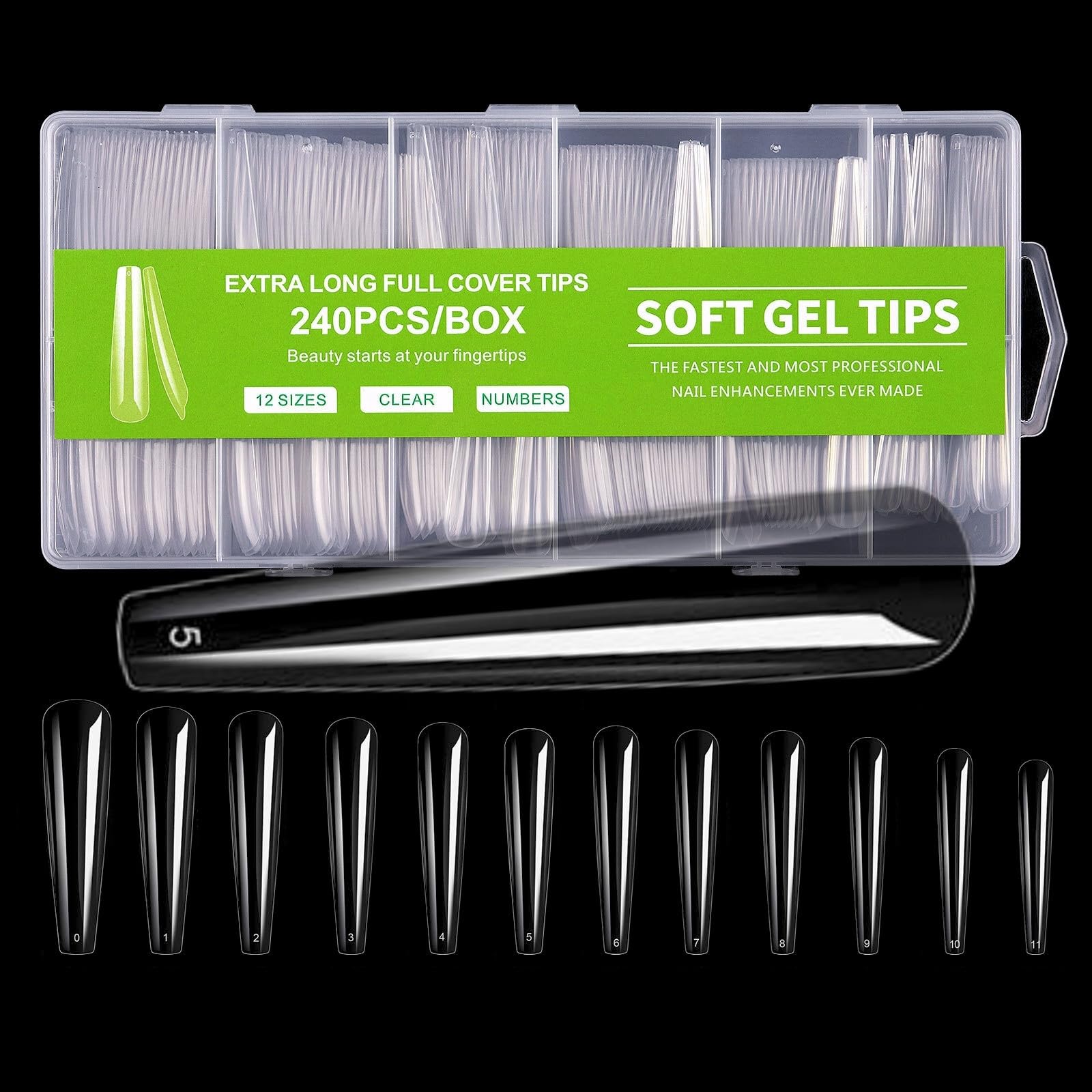ネイルチップ スーパーロング 12サイズ 240pcs 長くて美しいネイルを楽しめるスーパーロングタイプ。形状はオーバル、ポイント、バレリーナ、スクエアオフ、スクエアからお選びいただけます。
