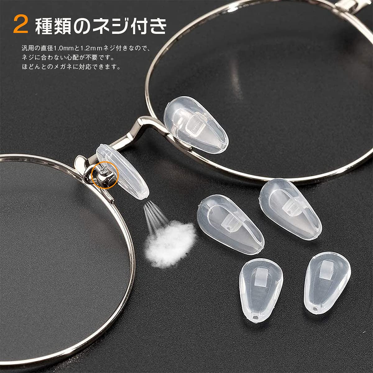 [PureSino] 鼻パッド メガネ 鼻パッド 眼鏡鼻パッド メガネ用 鼻あて エアクッション 5ペア パッド跡軽減 メガネずれ落ち防止 ノーズパッド 柔らかい シリコン製 交換セット ピンセット ドライバー ネジ付き (クリア)