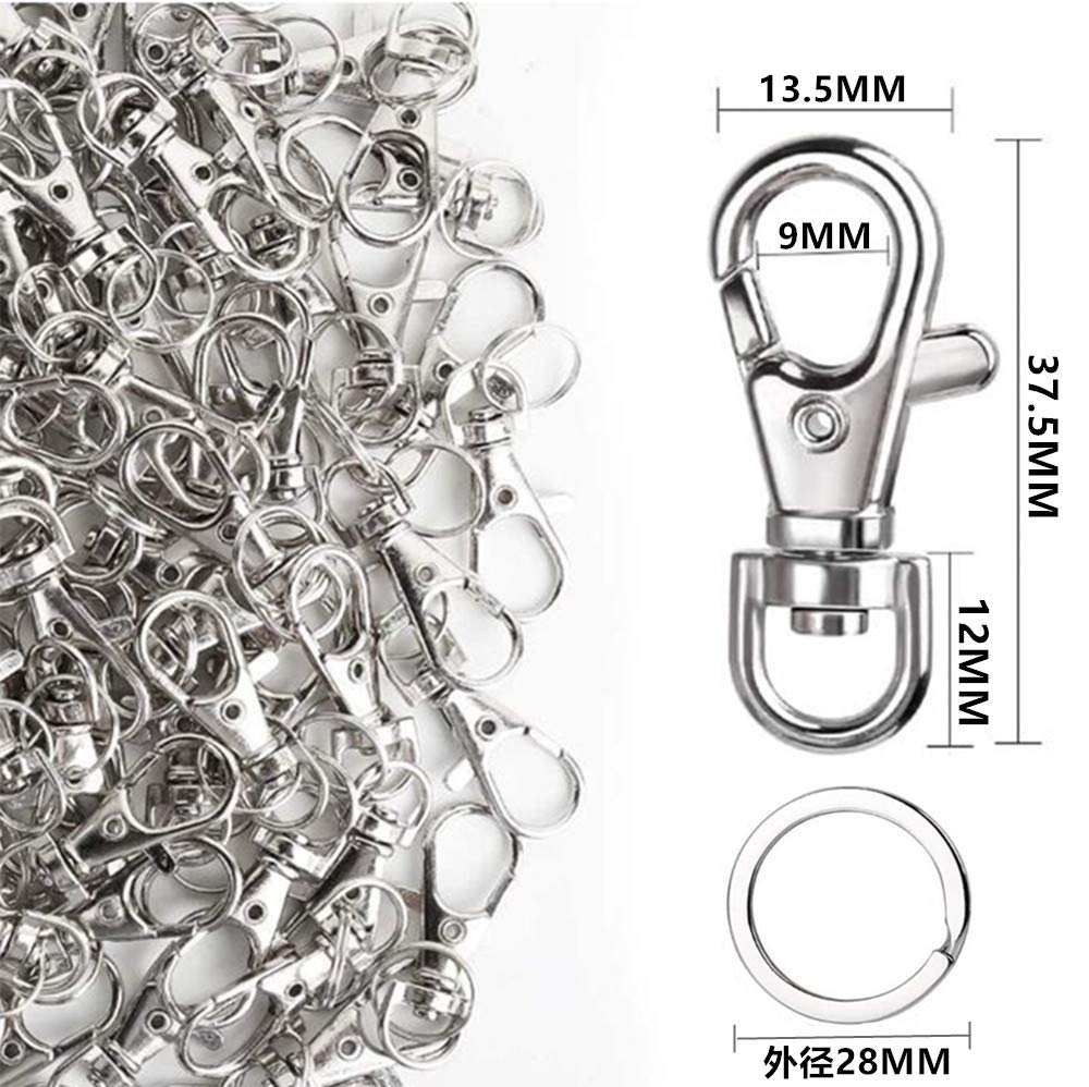 サムコス ナスカン 二重リング キーホルダー 回転フック 金具 パーツ 38mm 平キーリング ダブルリングー 28mm DIY用 アクセサリーナスカン 手芸用品 手作り シルバー 15個入り