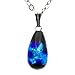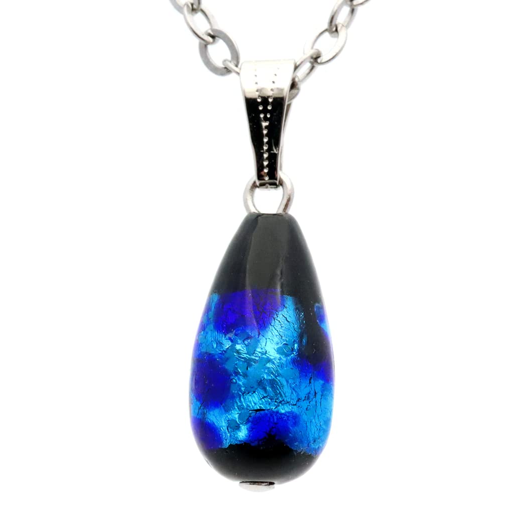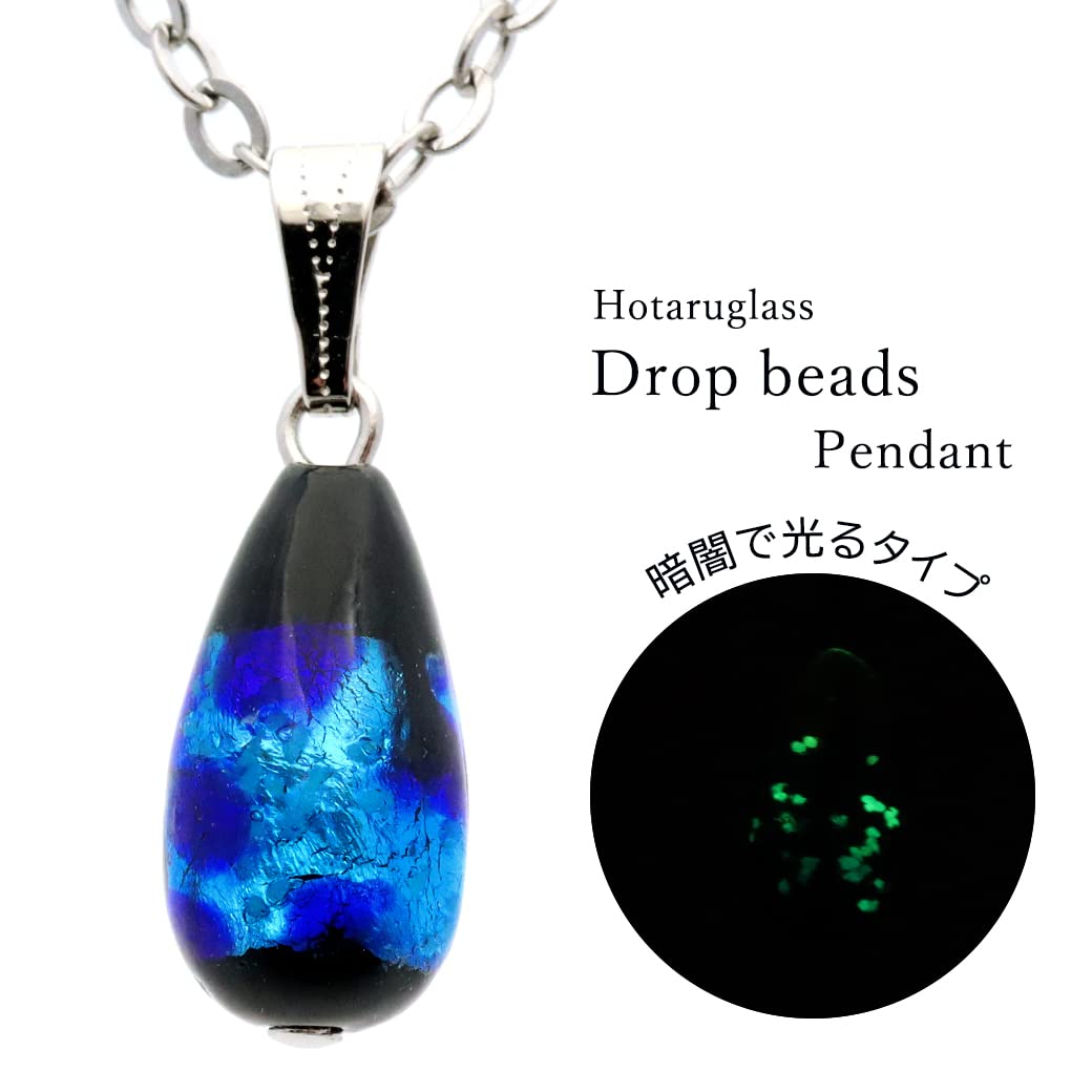 [GOLD STONE] 光る ホタルガラス ネックレス しずく ドロップとんぼ玉 ペンダント チェーン付き ブルー 沖縄 蓄光