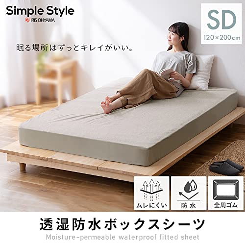 アイリスオーヤマ 防水シーツ セミダブル ボックスシーツ型 敷き布団/マットレス対応 キレイが保つむれにくい 裏面撥水加工 ふんわりタオル素材 おねしょシーツ 介護用 ペットも安心 セミダブル ベージュ BXS-TCST-SD