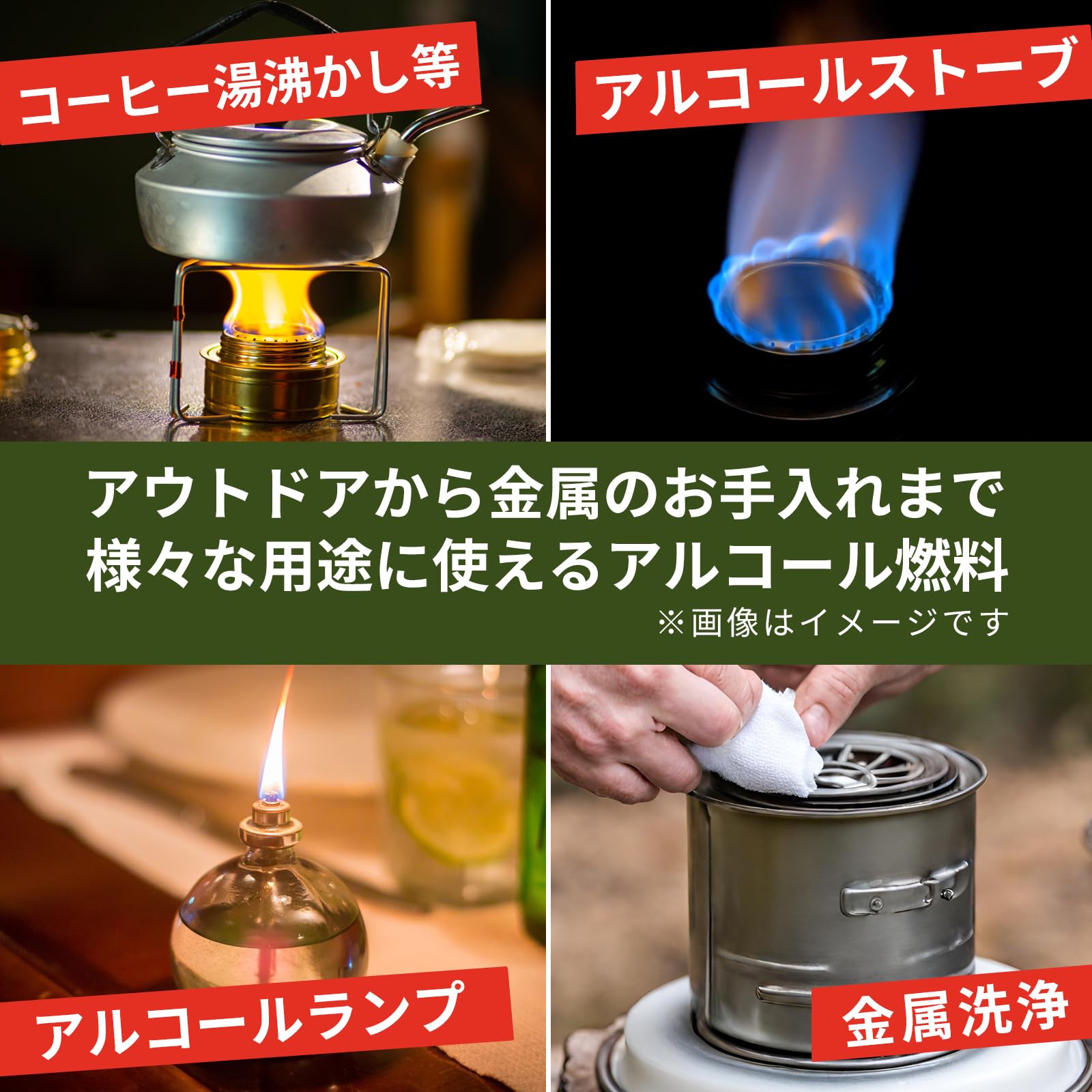 【アウトドアで大活躍!】キャンプなどのアルコールストーブ、コーヒー沸しの燃料補充としてお使いいただけます。アルコールランプ、アルコールバーナー、金属機器の洗浄にも◎