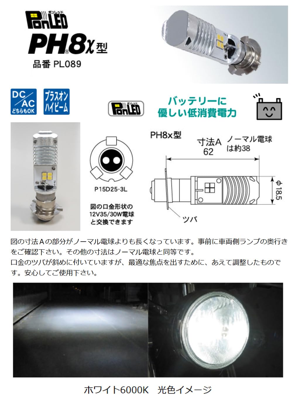 M&Hマツシマ LEDヘッドライトバルブ PonLED(ポンレッド) ホンダPH8x用 取付簡単 ポン付けタイプ PL089