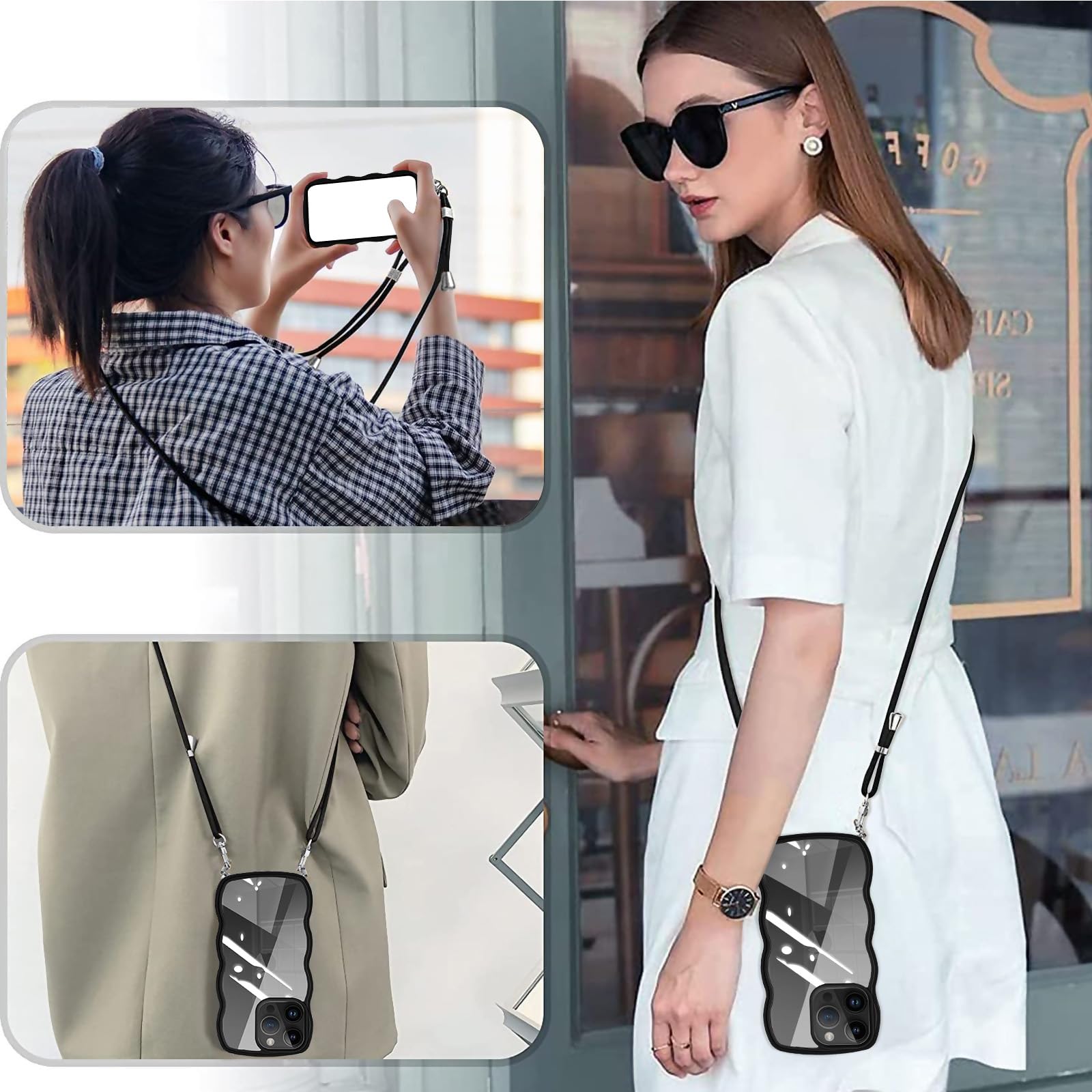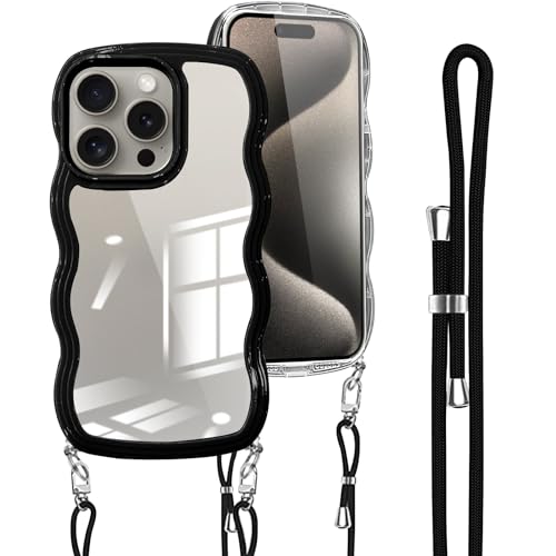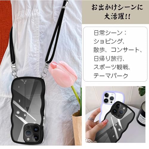iPhone 15 Pro 用の ケース ショルダー ストラップ iPhone 15Pro 用の カバー クリア 斜めかけ 肩掛け 首掛け アイフォン15 プロ 用 ケース 韓国 スマホケース ブラック ブラック