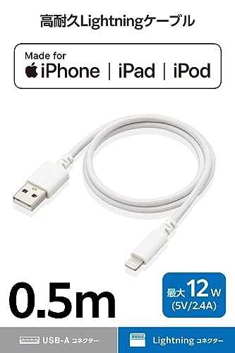 エレコム Lightningケーブル ライトニング iPhone 充電ケーブル 0.5m 高耐久 【 iPhone SE3 / SE2 / 14 / 13 / 12 等対応 】 Apple認証品 ホワイト MPA-UALSEC05WH