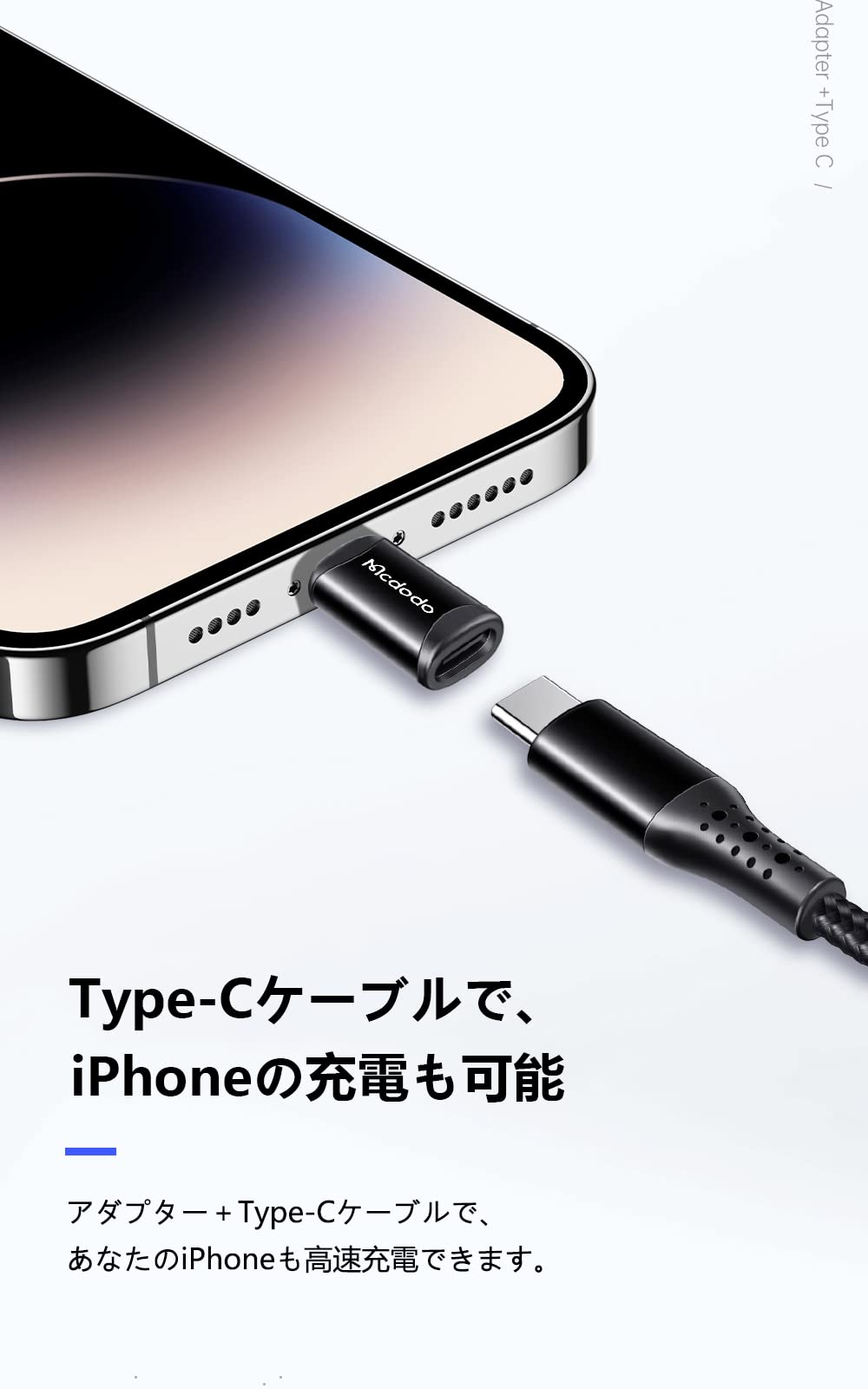 【USB-C to ライトニング 変換アダプタ】:USB-Cケーブルと接続して、iPhoneの充電も可能。アダプター+Type-Cケーブルで、あなたのiPhoneも高速充電できます。
