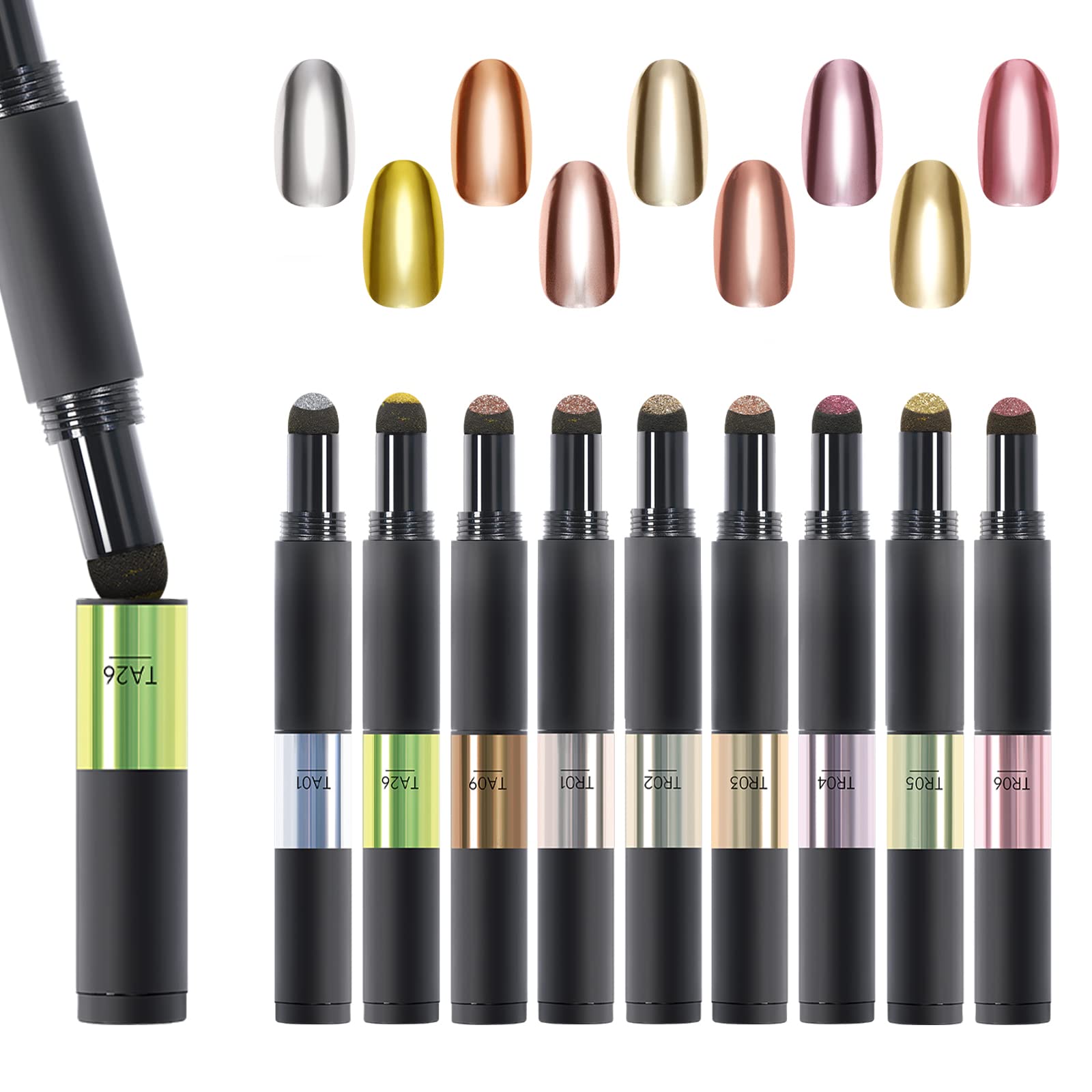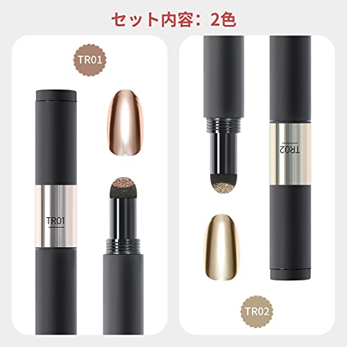 ジェルネイル スティックタイプミラーパウダーペン ダブルカラー マジックパウダーペン ミラーパウダー パウダーアート ネイルアート ネイルパウダー UV・LED対応(TR01 & TR02)