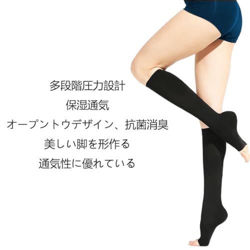 [NANOOER] 3足組 着圧ソックス つま先のない弾性ストッキング スリーピングストッキング ハイソックスひざ下 段階着圧靴下 加圧 スポーツ メンズ レディース (黒L/XL)