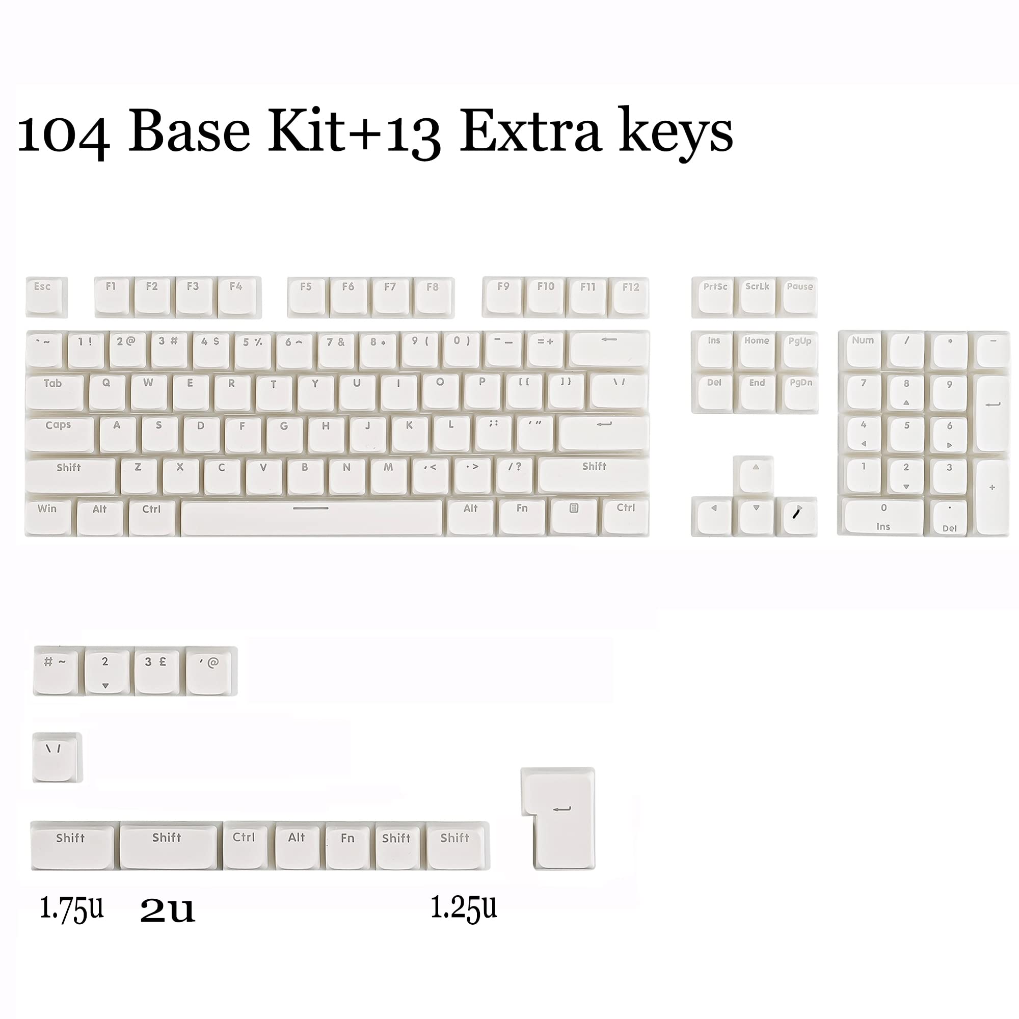 Ussixchare PBTプリンティングキーセット117キー、デュアルレンズ半透明XDA輪郭、ISOとANSIレイアウト61/68/84/87/104キーメカニカルキーボードに適している(プリン白)