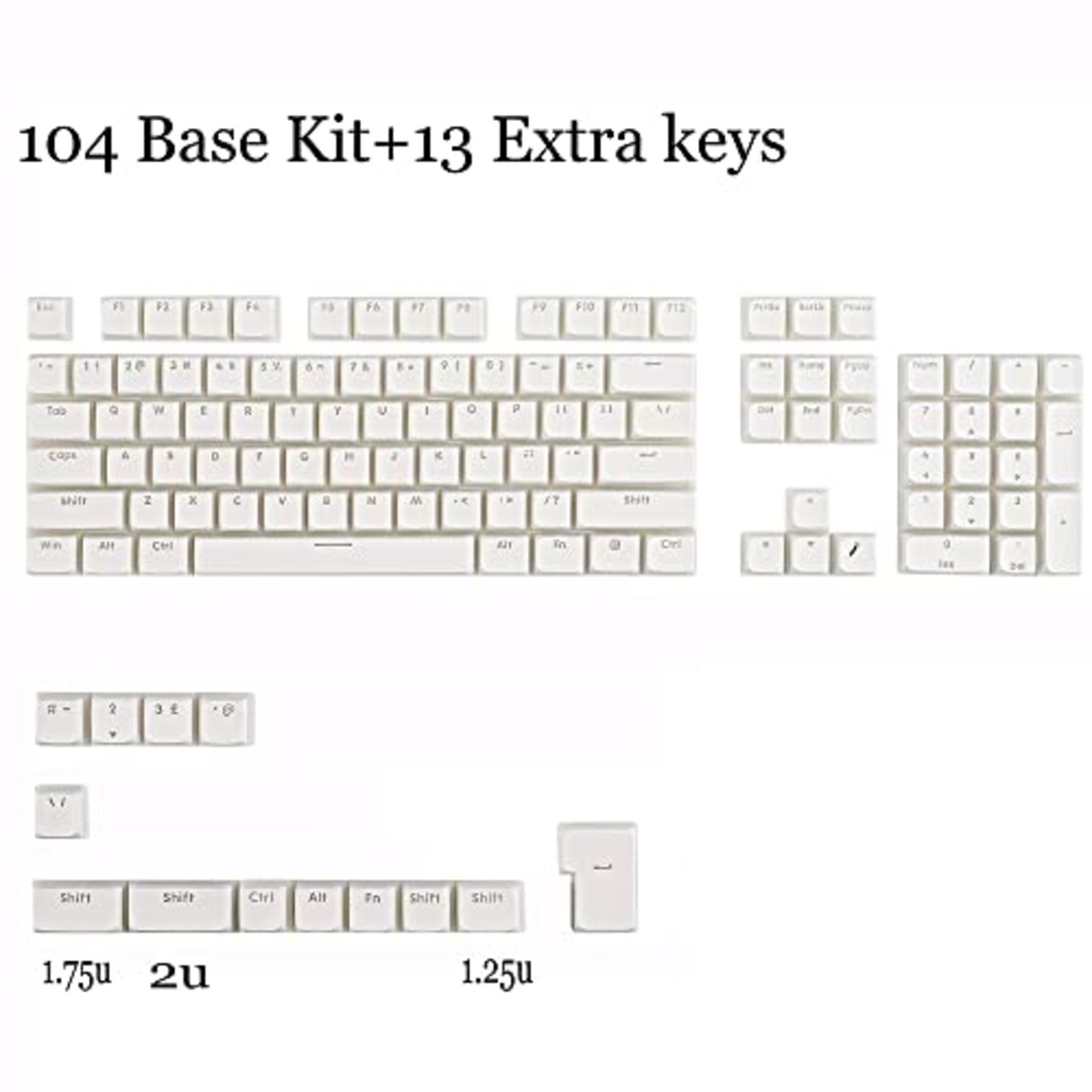 【117キー】104キー+13キー修飾子。60%、65%、75%、100%のフォームファクターキーボードとの完全な互換性があります。
