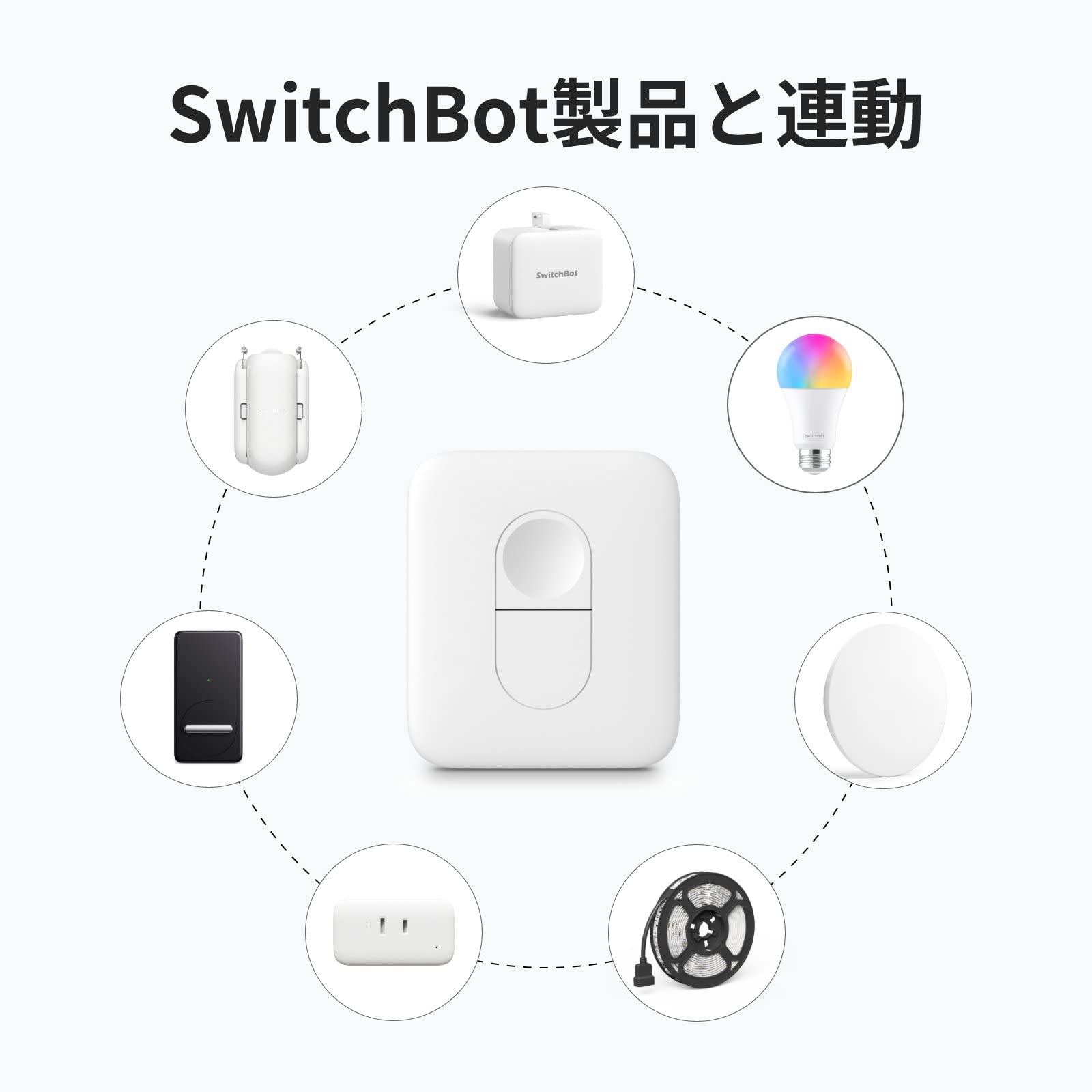 【SwitchBot製品を便利にコントロール】スマホ操作or音声コントロールの代わりに、物理ボタンでSwitchBotデバイスをコントロール。ボタンを押すだけで、SwitchBotデバイスを起動します。2024年6月時点対応できるSwitchBotデバイスは、ボット(スマートスイッチ)、カーテン、ブラインドポール、プラグミニ、スマート電球、テープライト、ロック、ロックプロ、シーリングライトシリーズ、ロボット掃除機K10+、気化式加湿器シリーズ、サーキュレーターです。