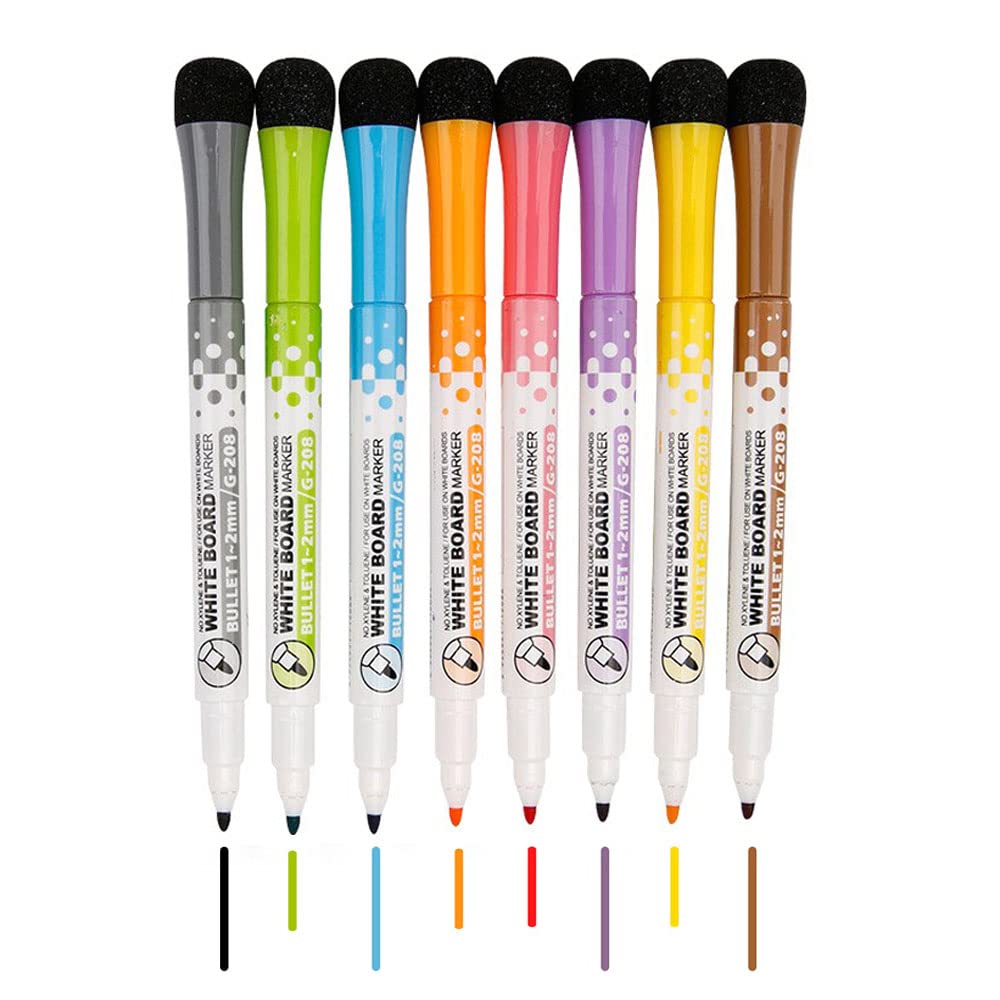 サムコス ホワイトボード マーカー マグネット付き 蛍光 マーカーペン 水性 お絵描き 丸芯 2mm 消しゴム付き LED看板等に書ける 家庭 学校用 (8)